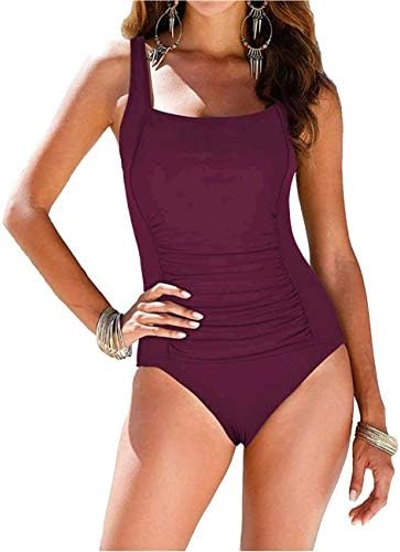 Firpearl Women's Black One Piece Bathing Suit Ruched Tummy Control Swimsuit