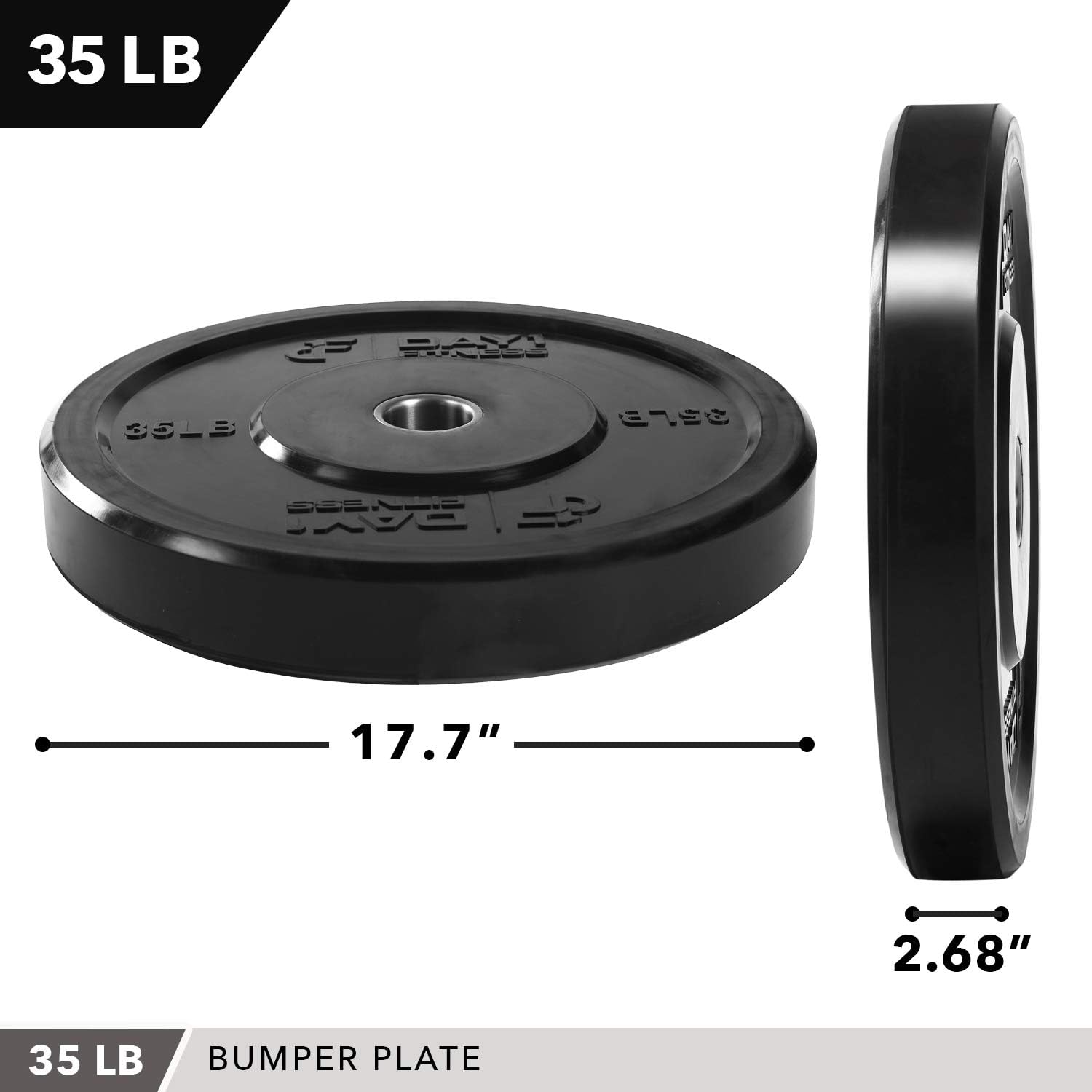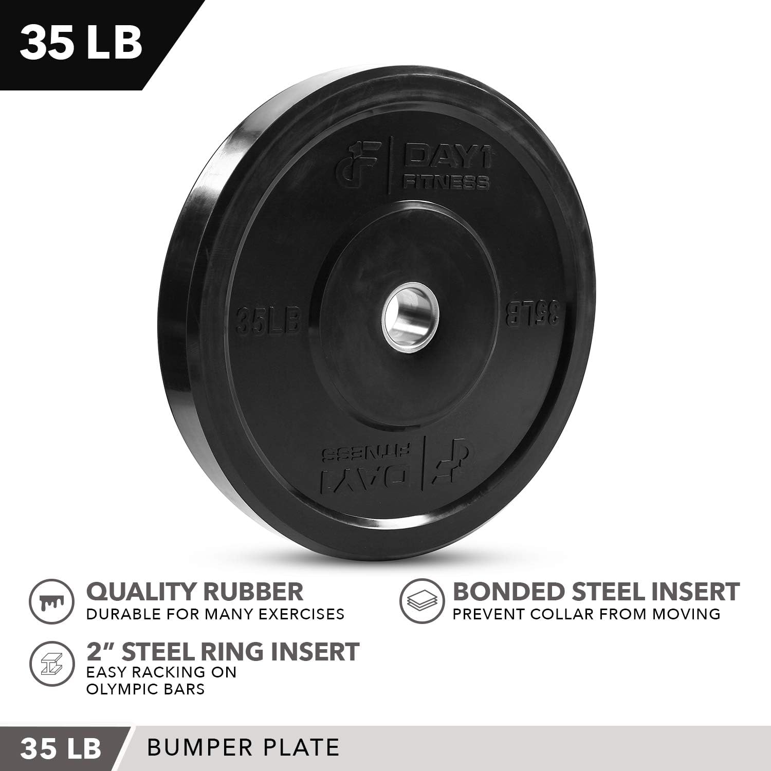 Available in Multiple Weights and Sizes: Day 1 Fitness bumper plates are sold individually or in pairs. Individual plates are available in 10, 15, 25, 35 and 45 pounds. Sets of weights (pairs) are available in 10, 15, 25 or 35 pounds.