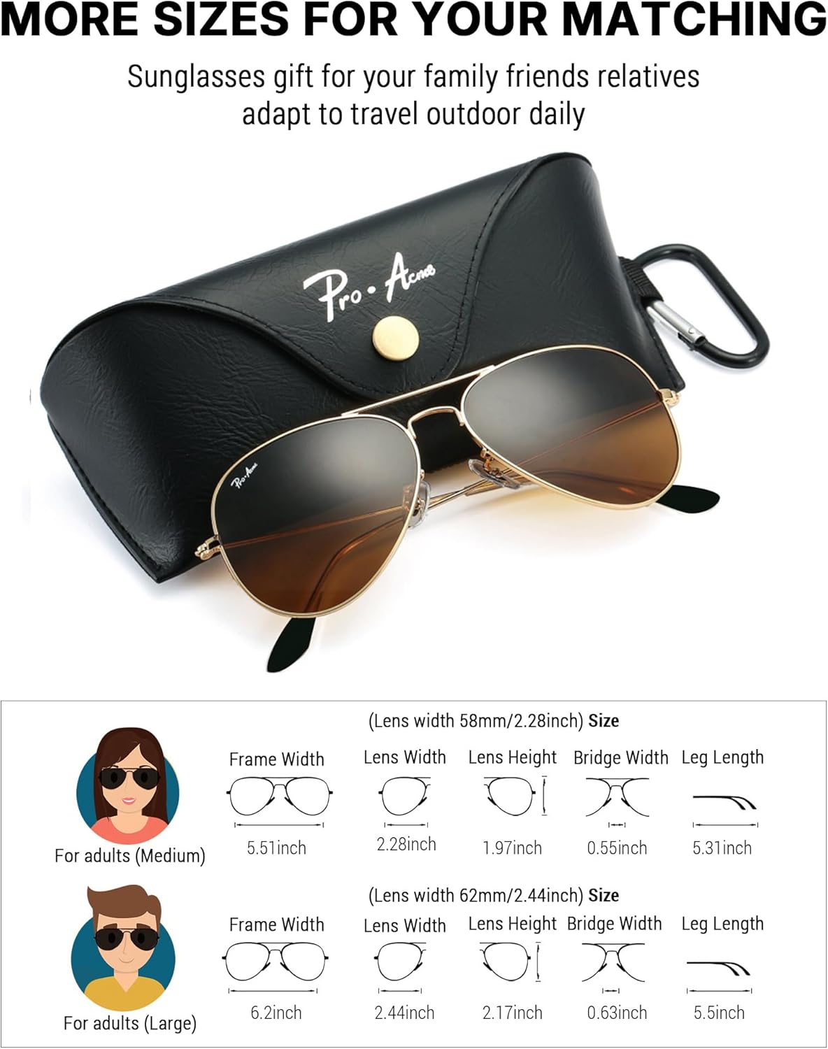 Gafas de Sol Aviator Clásicas Pro Acme para Mujeres y Hombres con Armazón de Metal y UV400