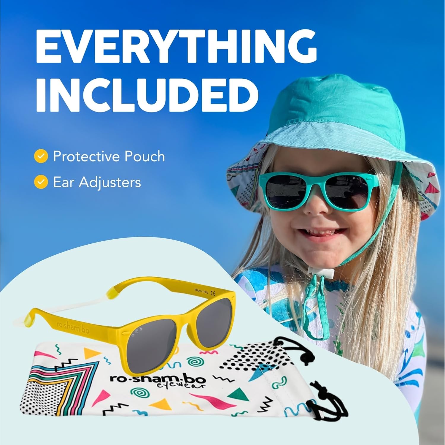 ROSHAMBO Unbreakable Square Sunglasses - Italian Made Polarized - BPA Free with Strap + Accessories - USA Assembled