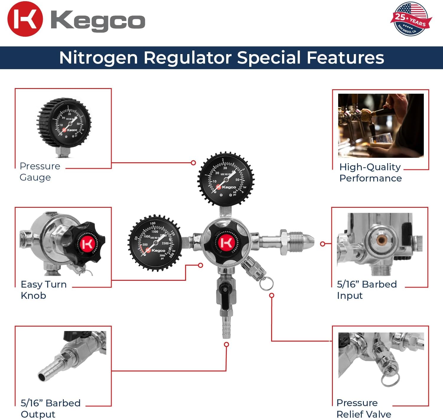 Kegco Elite Series Dual Gauge Nitrogen Draft Beer Regulator