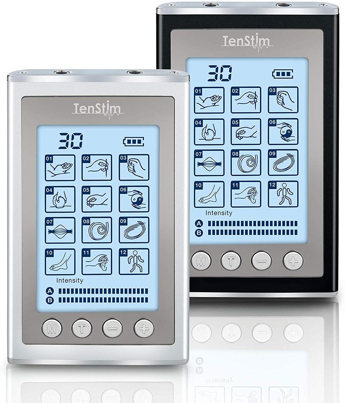 Tens Unit Muscle Stimulator - FDA 510K Cleared - EMS Combo Unit - 12 Modes - Dual Channels - Electronic Pulse Massager and Electrode Massage Machine for Pain Relief (Black or Silver)