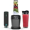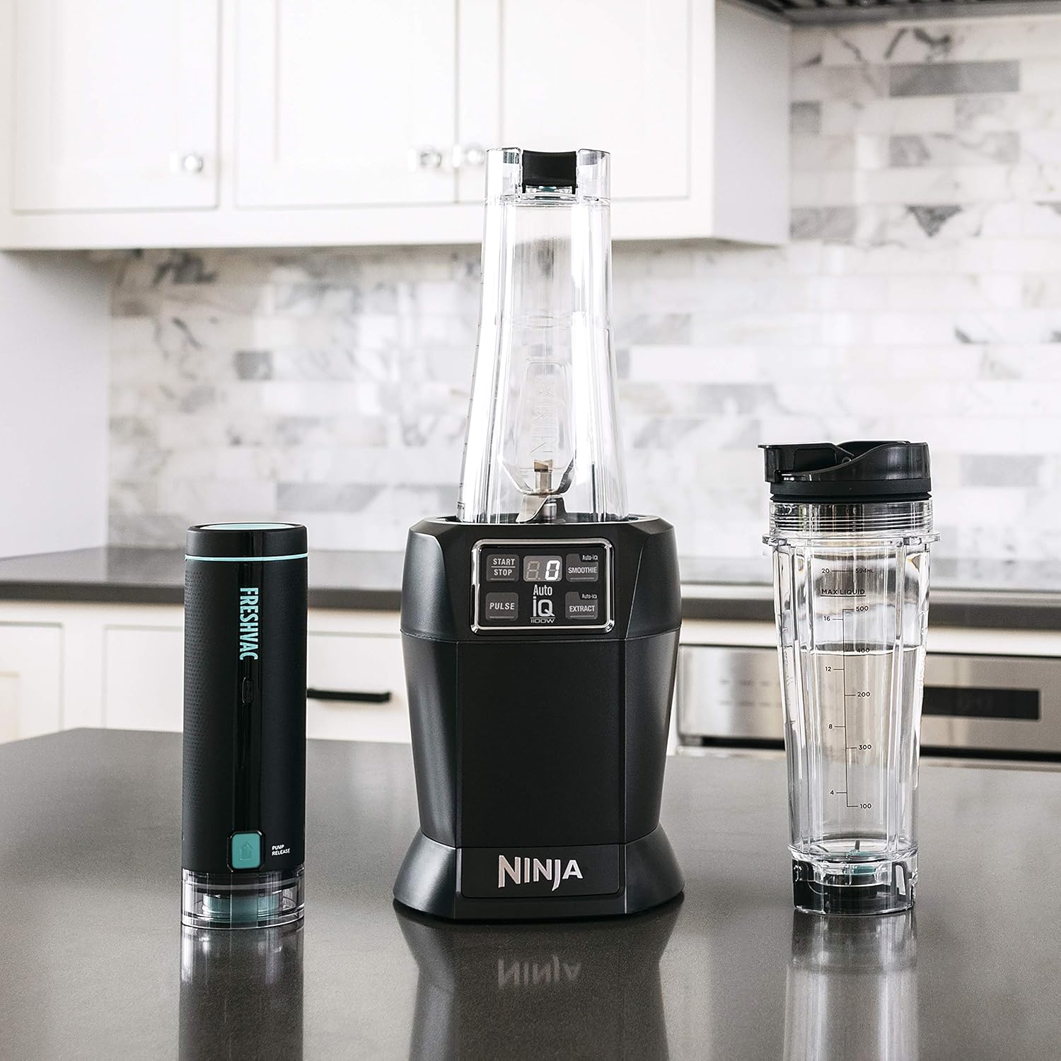 Licuadora Nutri Ninja con tecnología FreshVac, base Auto-IQ de 1100 vatios, 2 velocidades manuales y (2) vasos FreshVac de una porción con tapa (BL580), gris oscuro