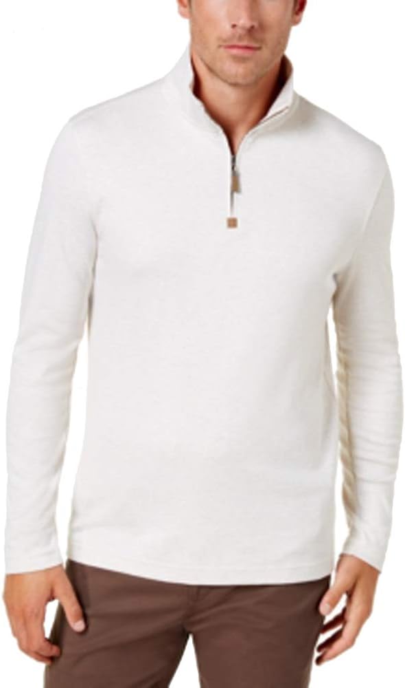 Tasso Elba 100000179 Sweater Pullover Pakistan Mens 1/4 Zip Zip Closure 100% Cotton (Supima) Ribbed Collar Heathered All Seasons Medium Weight Long Sleeve Casual Modern, Additional Details: Casual simple comfortable sweater, Quarter-zip closure, Heathered pattern throughout, Long sleeve; pullover style.