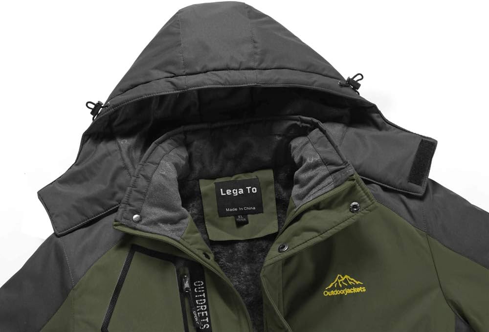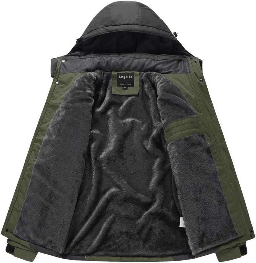 Lega Men SKi Jacket Winter Coat for Male With Removable Hood Waterproof Green L