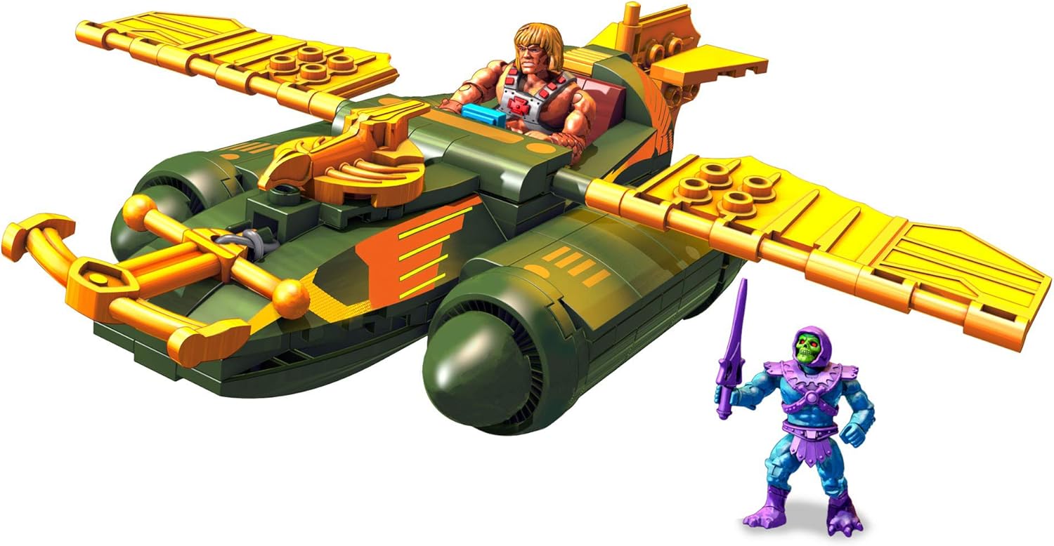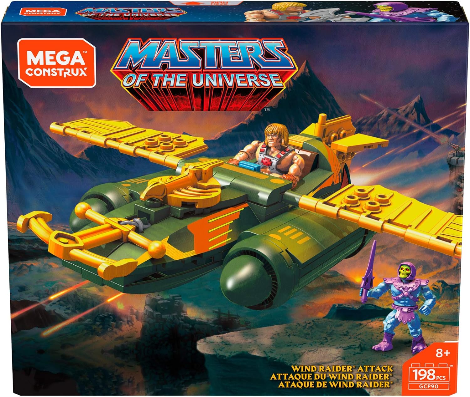 Construye el Wind Raider y haz que He-Man sorprenda a Skeletor ¡Skeletor no es rival para He-Man cuando construyes el Wind Raider y te lanzas para un ataque sorpresa! El icónico vehículo de Masters of the Universe cuenta con alas y cola articuladas y ruedas rodantes para aterrizaje suave. Ambas figuras de acción micro cuentan con detalles de lujo y decoración impresa premium. Ideal para edades de 10 años en adelante.