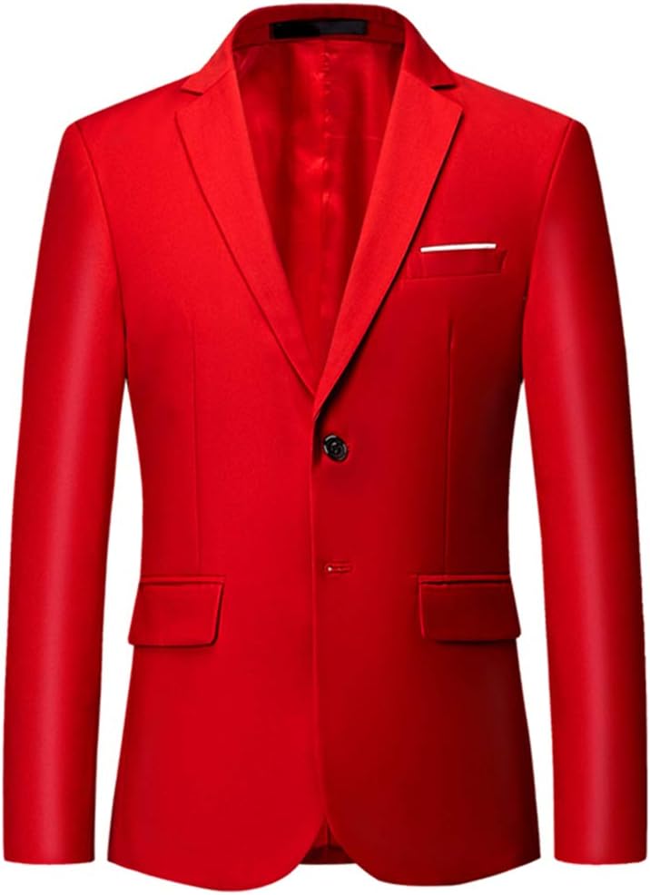 Mens Slim Fit Blazer Jacket Two-Button Notched Lapel Casual Suit Jacket