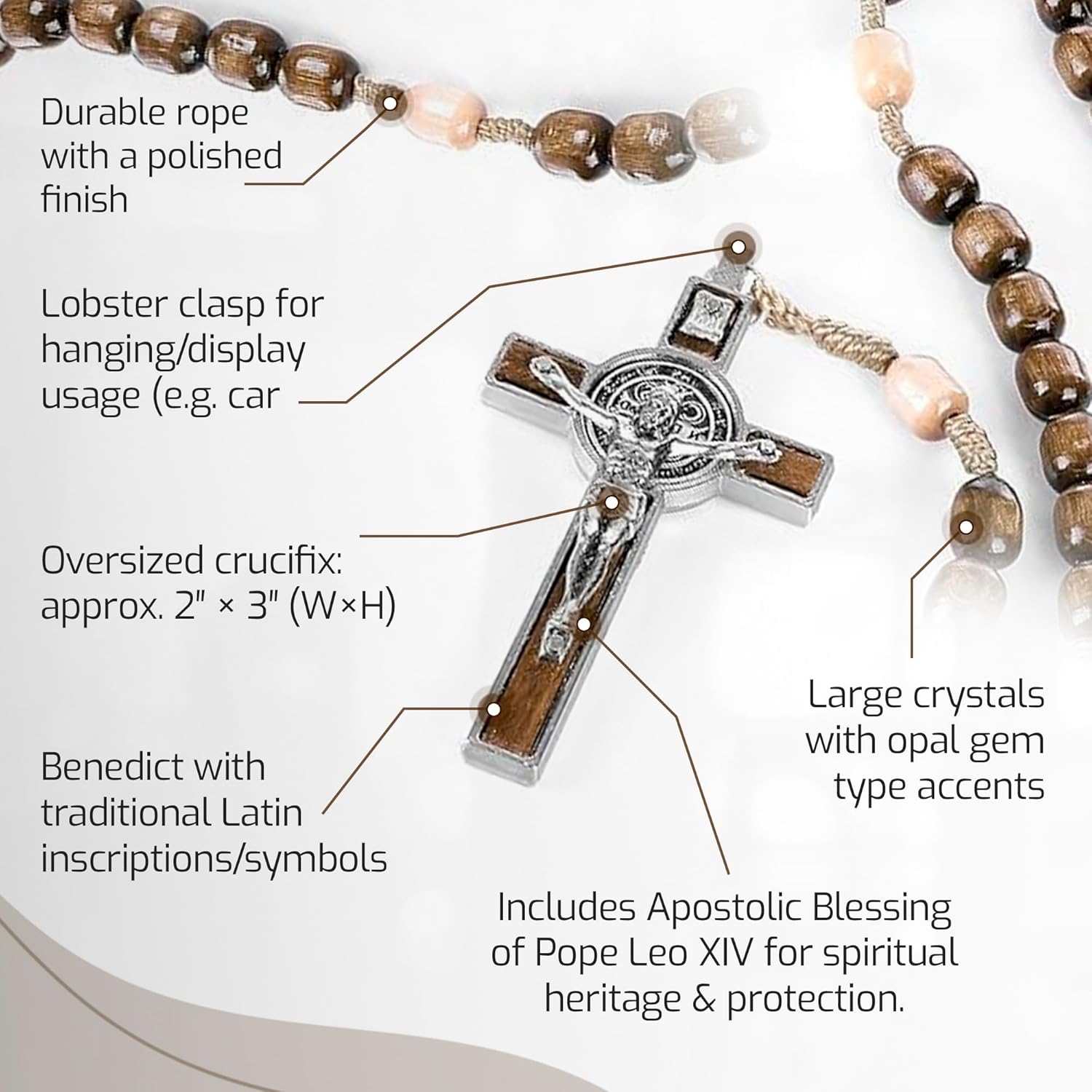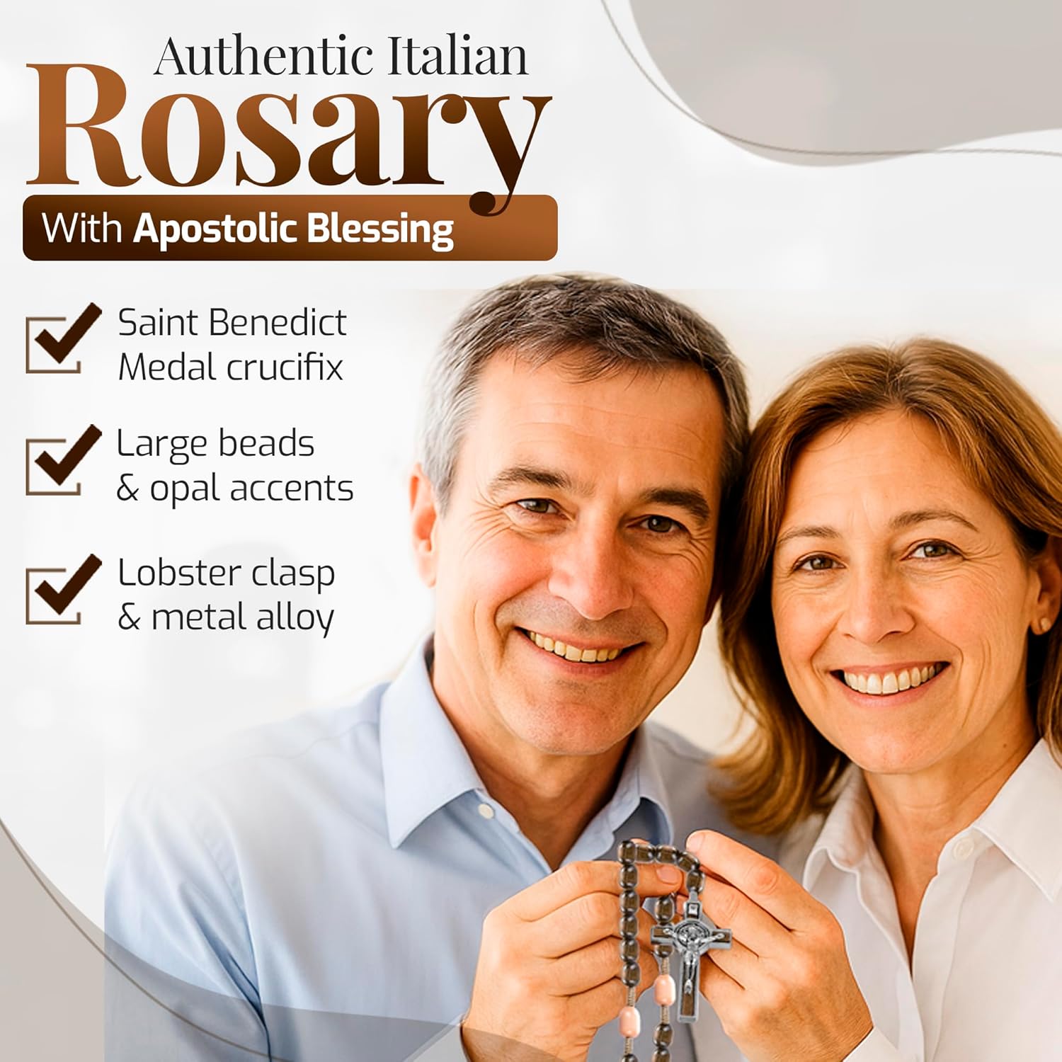 SANCTUM VERITAS Rosario italiano con bendición apostólica del Papa León XIV – Collar católico de cuentas grandes para espejo del coche, regalo de recuerdo religioso para primera comunión