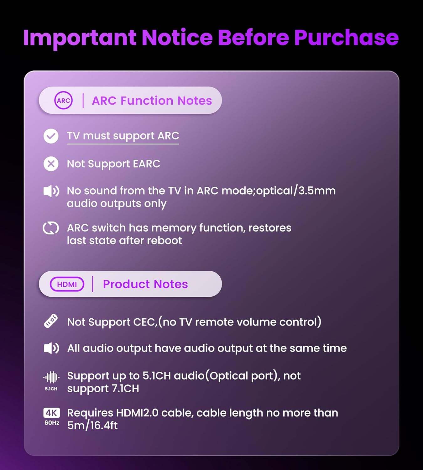 Más información para tu compra de avedio Links HDMI ARC Audio...