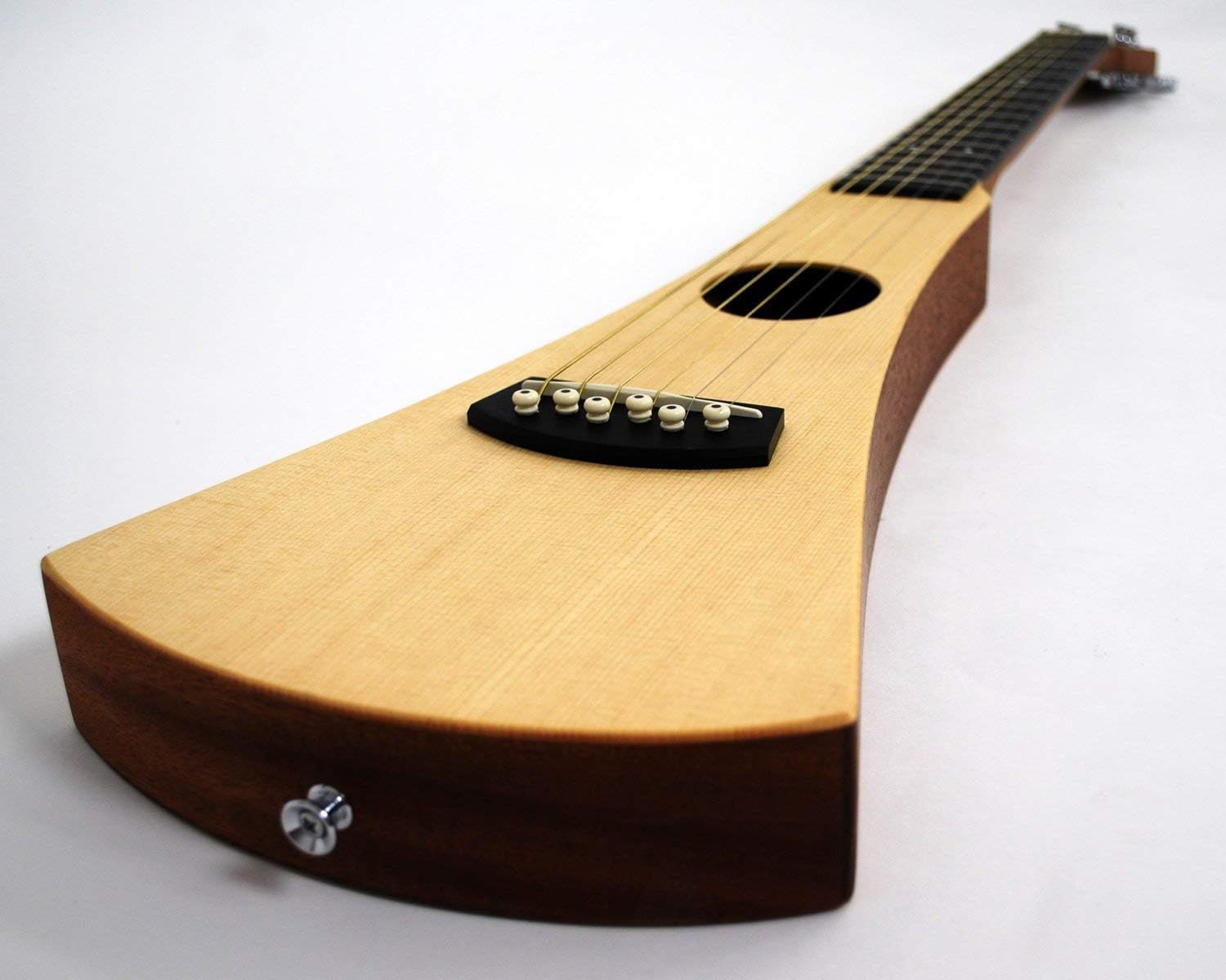 Adding value to your purchase, Austin Bazaar bundles your instrument with necessary accessories. Everything you need to start playing immediately comes in one box. Save yourself the hassle and save some money while you're at it. A gig bag is included so you can keep your instrument safely packed away when you're on the go. An easy-to-use clip-on tuner is included so you can keep your instrument in tune. A strap is included so you can practice or better yet perform while standing up. Strings are included so you have extra for later. Picks are included so you can start playing right out of the box. An Austin Bazaar instructional DVD is included so you can pick up some tips while learning your new instrument. An Austin Bazaar polishing cloth is included so you can keep your new instrument in mint condition. The sky's the limit for portability! The steel-string Backpacker travel guitar is lightweight, durable, easy to play (and tune) and is shaped to fit into the smallest places. Constructed of solid tonewoods. This model includes SUSTAINABLE WOOD CERTIFIED parts.PRODUCT SPECSBODY SIZE: Backpacker FINISH TOP: Hand Rubbed CONSTRUCTION: Backpacker BACK & SIDE FINISH: Hand Rubbed BRACING PATTERN: Backpacker SCALE LENGTH: 24" BRACE SHAPE: Non-Scalloped FINGERBOARD WIDTH AT NUT: 1 11/16" TOP MATERIAL: Sitka Spruce NECK SHAPE: Backpacker BACK MATERIAL: Tonewoods NECK TAPER: Backpacker Taper SIDE MATERIAL: Tonewoods ELECTRONICS: Not Available TOP COLOR: Clear BRIDGE STYLE: Backpacker Steel String BINDING: N/A BRIDGE STRING SPACING: 2.187" TOP INLAY MATERIAL: N/A BRIDGE MATERIAL: FSC Certiied Richlite TOP DETAIL: N/A BRIDGE PIN MATERIAL: White Plastic PICKGUARD: N/A BRIDGE PIN DOTS: Black Plastic PICKGUARD INLAY: N/A SADDLE: Compensated White Tusq ROSETTE: N/A SADDLE RADIUS: 16" BRACE MATERIAL: Sitka Spruce BACK & SIDES COL