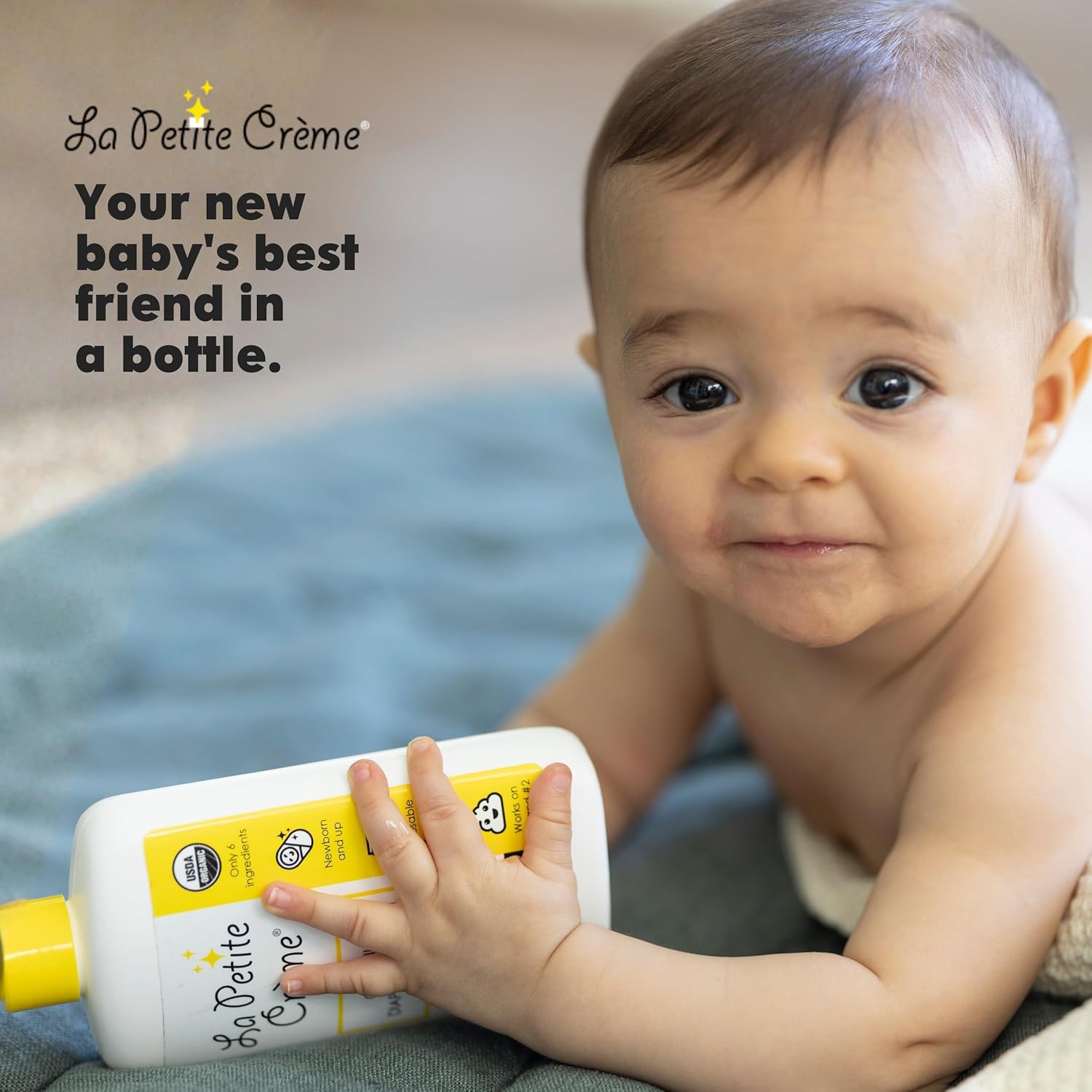 La Petite Creme French Premium Diapering Lotion - Diaper Cream Alternative to Baby Wipes - Gentle Moisturizer & Skin Cleanser with USDA Certified Organic Ingredients - Baby Essentials (20 oz)