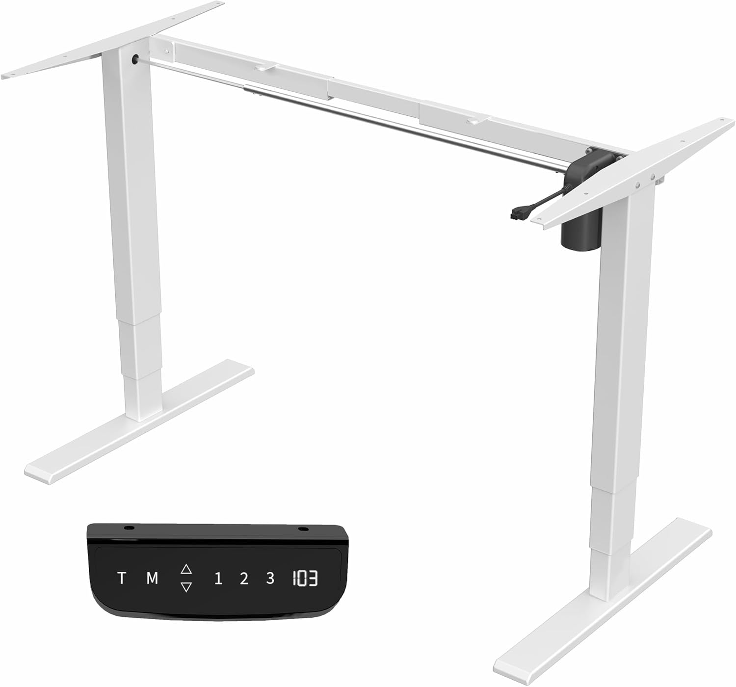 VIVO Electric Stand Up Desk Frame Workstation with Memory Touch Pad, Single Motor Ergonomic Standing Height Adjustable Base, White, DESK-V102EW