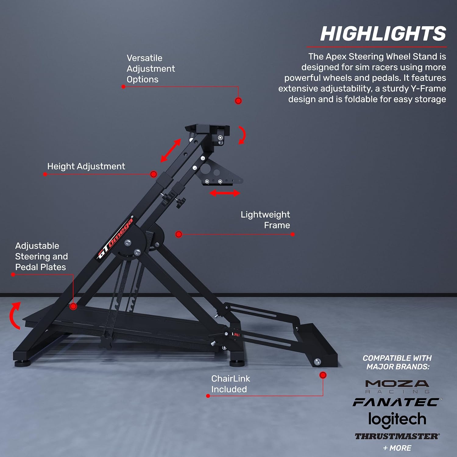 Soporte de Rueda de Carrera GT OMEGA Apex para Volante de Juegos Logitech Fanatec Clubsport Thrustmaster Montaje de Pedal y Palanca, TX T500 T300 G29 G920 PS4 Xbox Plegable y Ajustable en Inclinación para Control de Carrera