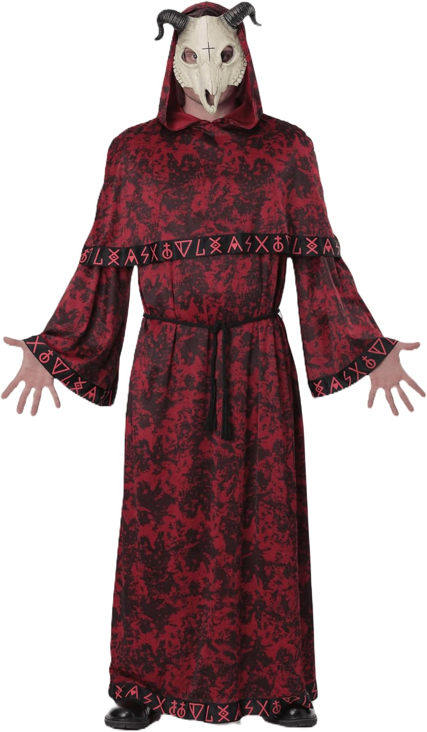 Adult Masked Evil Costume, Men's Red and Black Robe, Satanic Panic Demonic Cult Leader Halloween Outfit