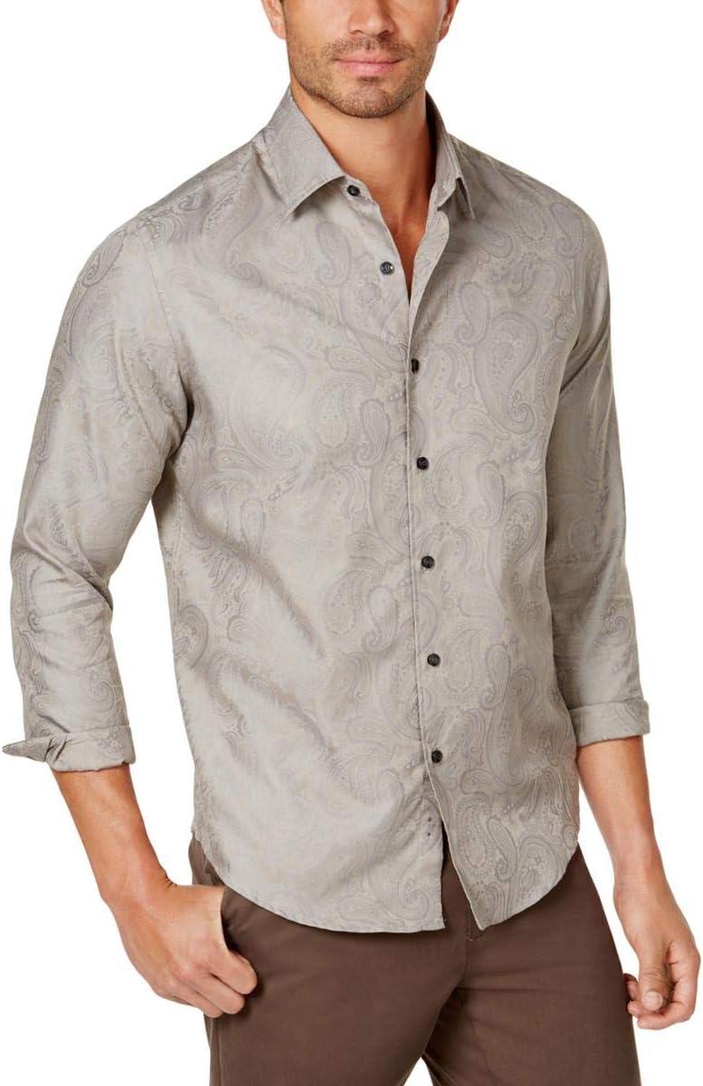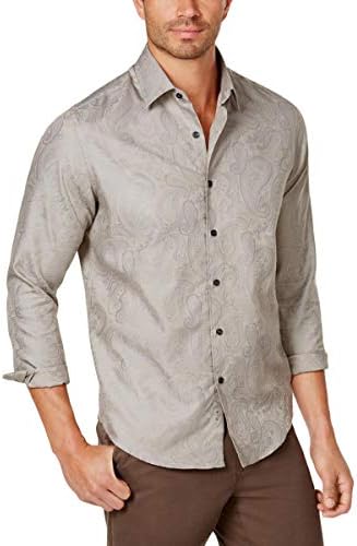 Tasso Elba Mens Marcus Paisley Button Up Shirt, Grey, Small