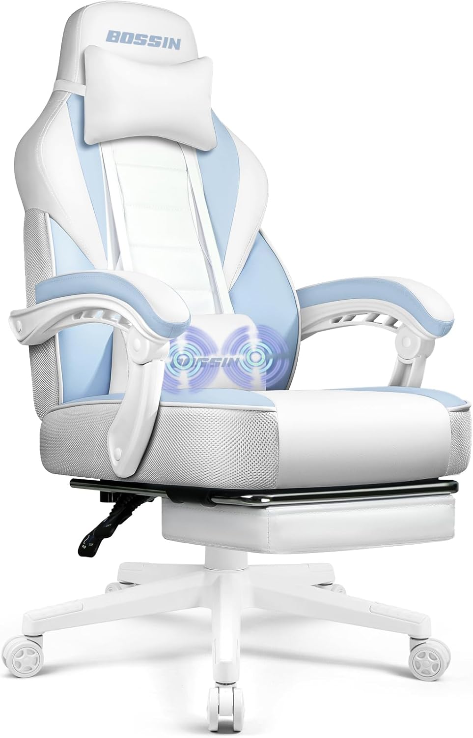 BOSSIN Racing Style Gaming Chair, Leather Computer Desk Chair with Footrest and Headrest, Ergonomic Heavy Duty Design, Large Size High-Back E-Sports, Big and Tall Gaming Chair