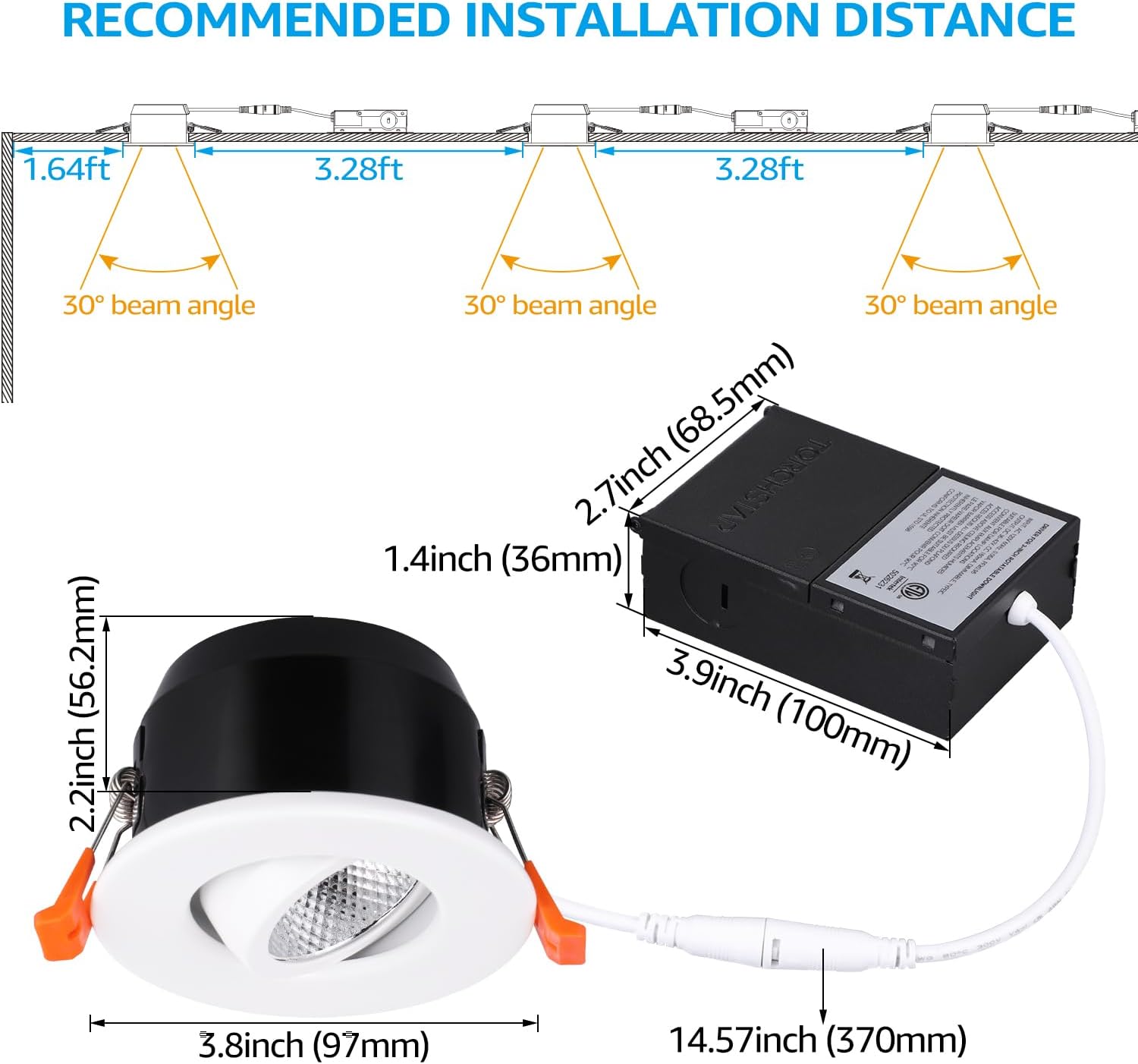 Luz Empotrada Sin Carcasa de 3 Pulgadas: El diseño 3 en 1 de esta luz empotrada no necesita comprar bombillas, rejillas empotradas y carcasas por separado. La compra integral permite una instalación más fácil y te ahorra dinero