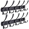 Dseap Coat Rack Wall Mounted - 5 Tri Hooks, Heavy Duty, Stainless Steel, Metal Coat Hook Rail for Coat Hat Towel Purse Robes Mudroom Bathroom Entryway (Black, 2 Packs)