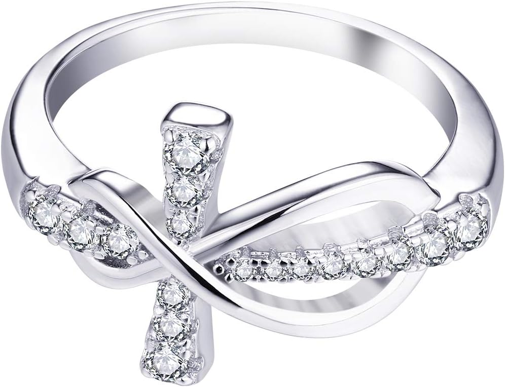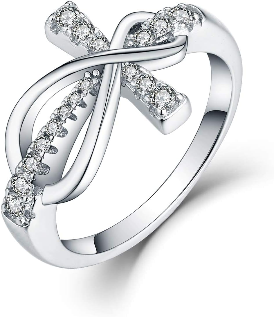 JO WISDOM 925 Sterling Silver Cubic Zirconia Cross Infinity Ring