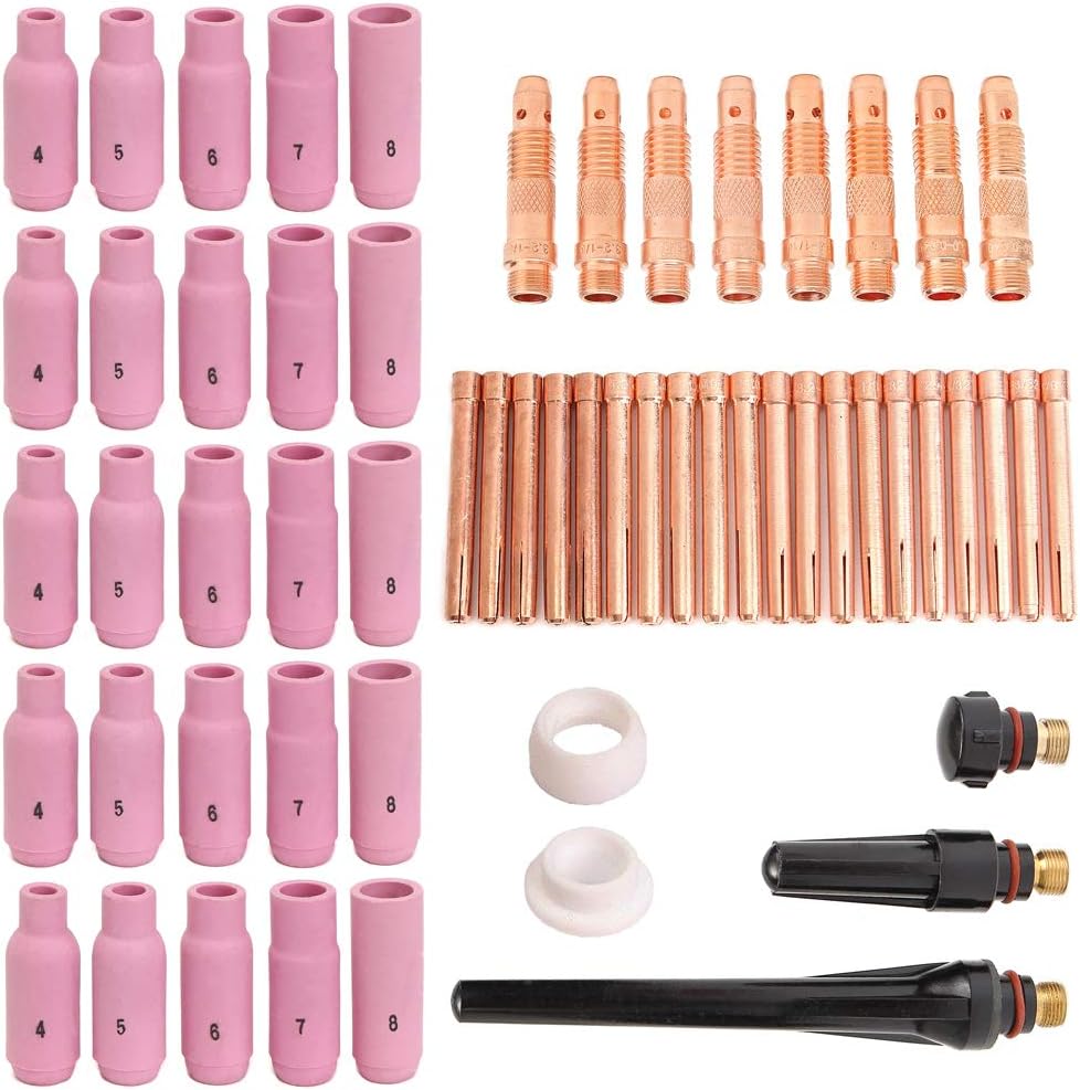Alffun kit de 58 piezas de antorchas de soldadura TIG y lentes de gas con cuerpo de pinza, boquilla de alúmina, kit de consumibles para accesorios de antorcha de soldadura TIG