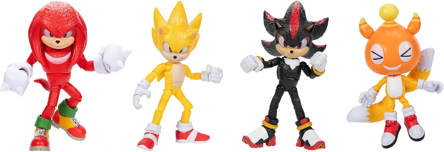 Sonic 3 Movie 5-InchAction Figure 4-Pack, Articulated Figures from Jakks Pacific's Wave 2 Include Super Sonic, Shadow, Knuckles, and Chao Mascot Tails
