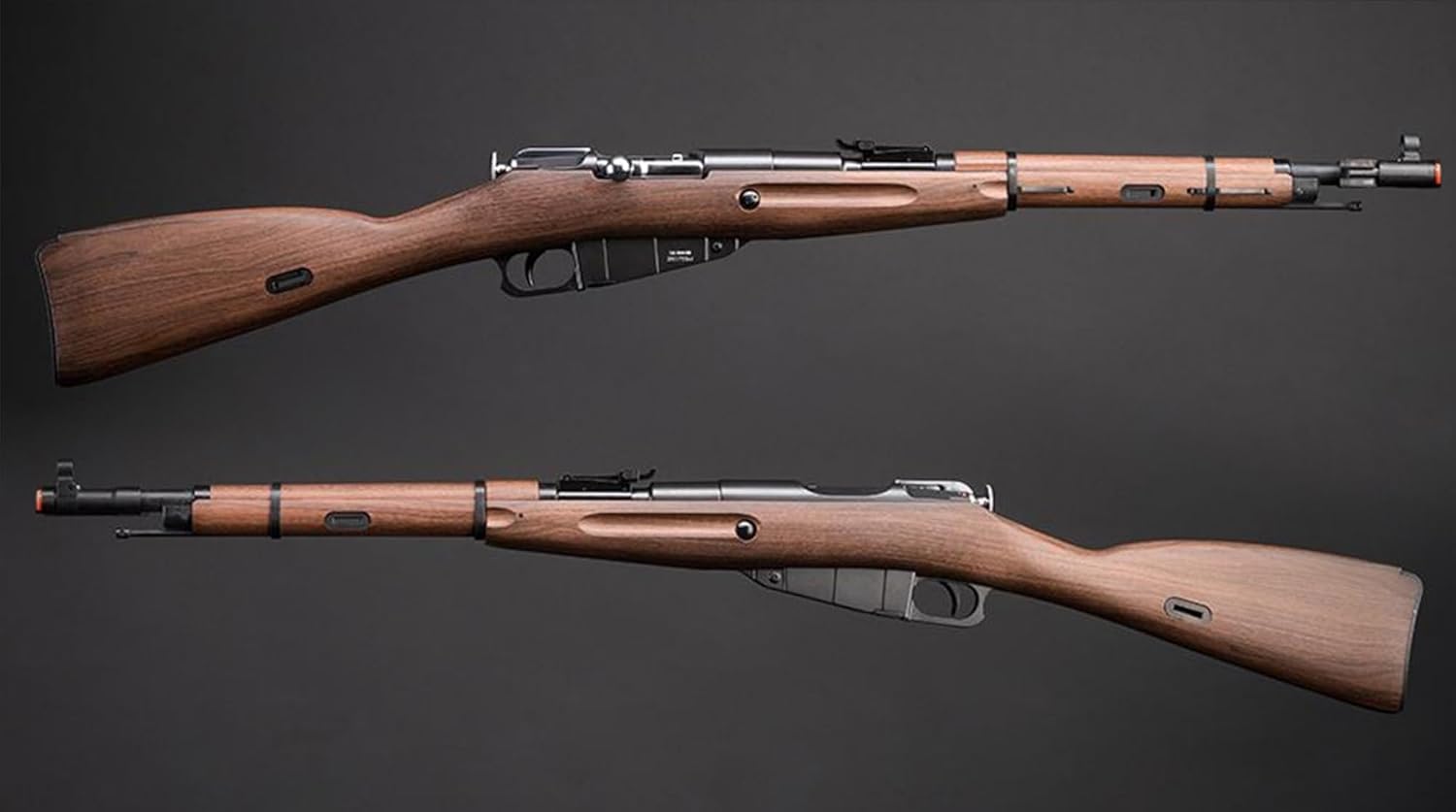 El Mosin-Nagant es un fusil militar de cerrojo, alimentado por un cargador interno, inventado bajo la comisión gubernamental por inventores rusos y belgas, y utilizado por las fuerzas armadas del Imperio ruso, la Unión Soviética y varias otras naciones. Presentado en 1944 como una actualización de la carabina M38, el M44 presentaba un cañón y una culata acortados destinados a ser utilizados por tropas que no eran de primera línea, como ingenieros de combate y artilleros. La mayor diferencia entre el M38 y el M44 es el antebrazo modificado para una bayoneta cruciforme montada permanentemente que se pliega cuando no se usa. La carabina WinGun M44 es una réplica hermosa y de alta calidad hecha con muebles de imitación de madera y metal de sensación realista. La acción es ultra suave con un cargador extraíble que alberga tanto los cartuchos de CO2 como las BB. El rifle cuenta con un cerrojo de seguridad funcional, así como una bayoneta cruciforme de metal plegable. Precaución: Hacer escaramuzas o transportar el rifle con la bayoneta metálica desplegada puede ser peligroso. Recomendamos mantener la bayoneta plegada mientras el rifle esté en uso. El comprador asume toda la responsabilidad. Características: + Conjunto de barril, gatillo y cargador de metal completo + Muebles de imitación de madera ultra realista con textura veteada y apariencia teñida + Cartucho de CO2 de 12 g convenientemente almacenado en 12 cargadores extraíbles redondos + Perno de ciclo suave con perno de seguridad de trabajo + Bayoneta plegable de metal permanentemente adherida + Tirador suave y ligero del gatillo +mira trasera ajustable+puntos de montaje del cabestrillo (cabestrillo incluido) Longitud: 1023 mm (40,25 «) /1340 mm (52,75 «) con bayoneta desplegada Materiales: aleación de aluminio, acero, polímero Calibre: 6 mm Airsoft BB Peso: 3724 g (8,21 libras) Cargador: 12º cargador extraíble FPS: 450 ~ 550 (medido con BBs de 0,20 g) y Co2) Tipo de gas: Co2 Modos de fuego: Bolt Action Hopup: NA Fabricante: WinGun
