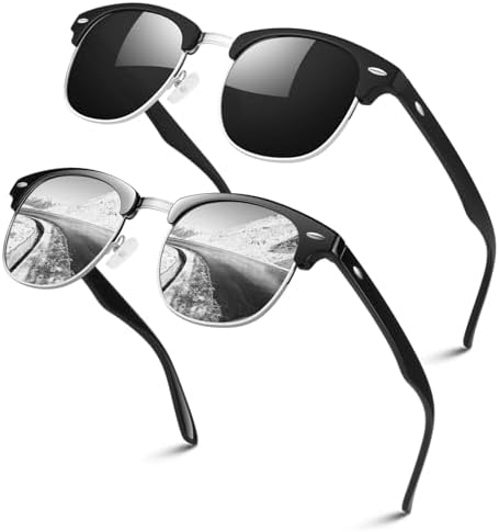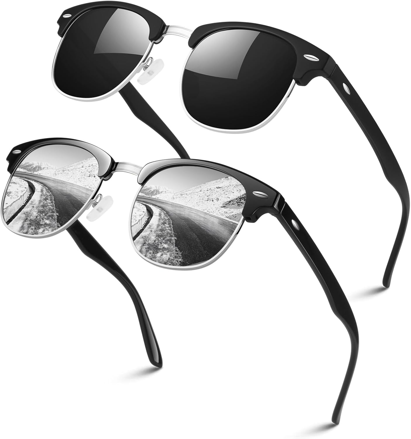 LINVO Polarized Semi Rimless Sunglasses for Men Women, Classic Retro Shades Half Frame Driving Sun Glasses UV Protection