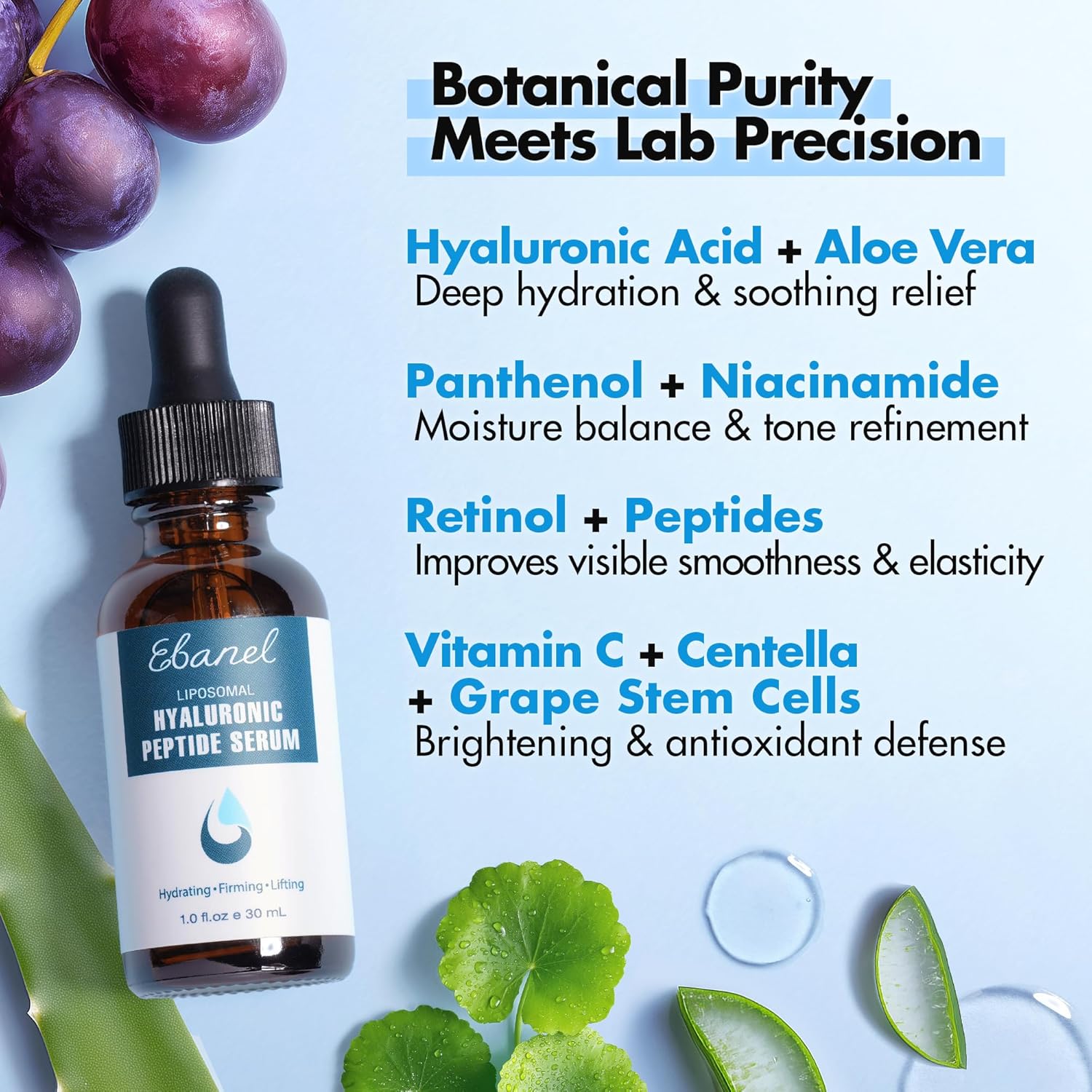 Ebanel Hyaluronic Acid Serum for Face with Peptides & Niacinamide, Hydrating Face Serum for Women, Age-Defying Formula Infused with Vitamins B, C & E to Plump, Firm & Smooth Skin