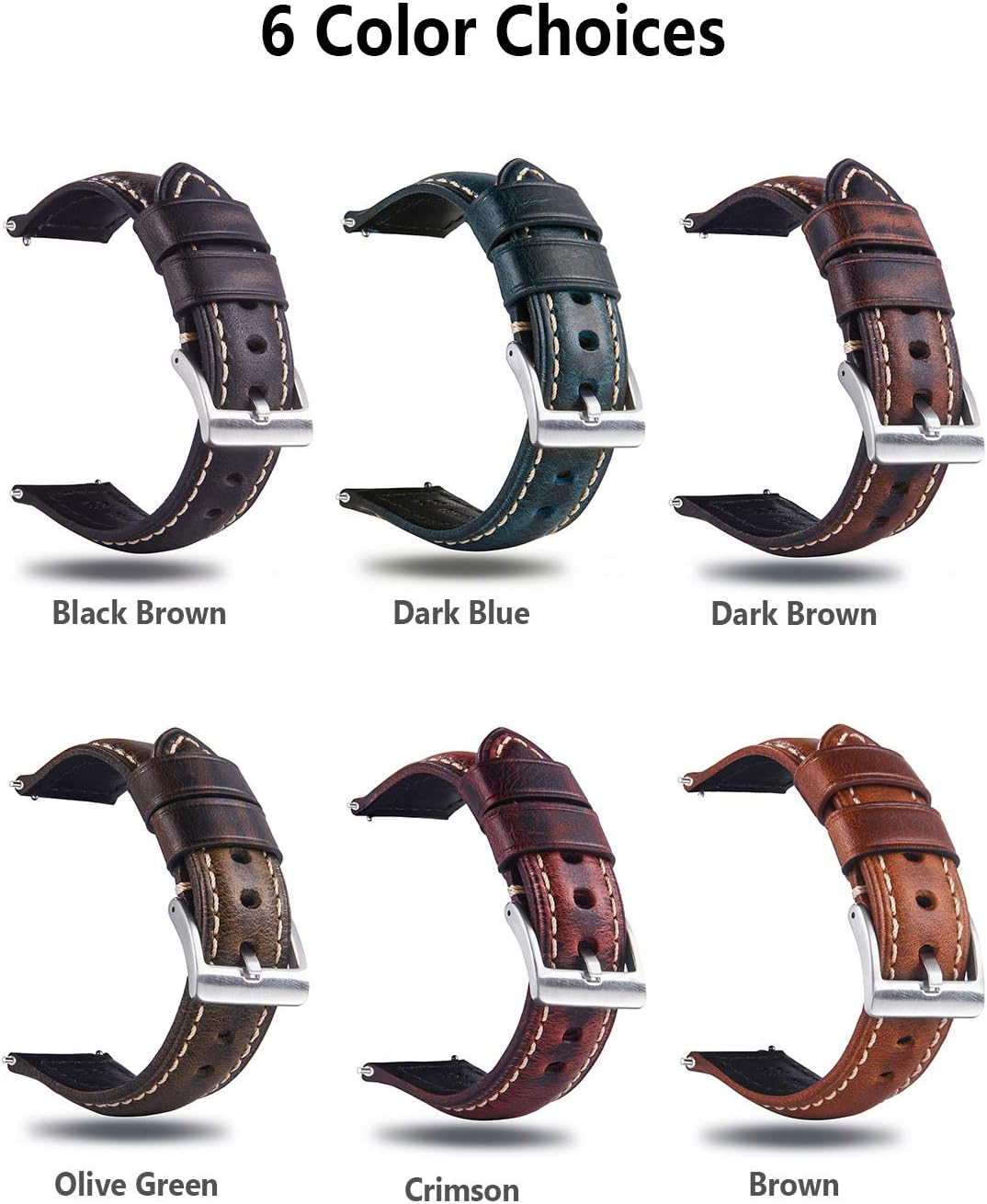Correa de cuero retro de liberación rápida, correa de cuero vintage curtido en aceite, reemplazo de correa de cuero con tirador, elección de ancho: 18mm, 20mm, 22mm, 24mm o 26mm