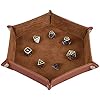 STYLIFING Bandeja de dados de metal para lanzar dados, caja de almacenamiento para juegos de mesa RPG DND, doble cara plegable de piel sintética gruesa y terciopelo camello de alta calidad