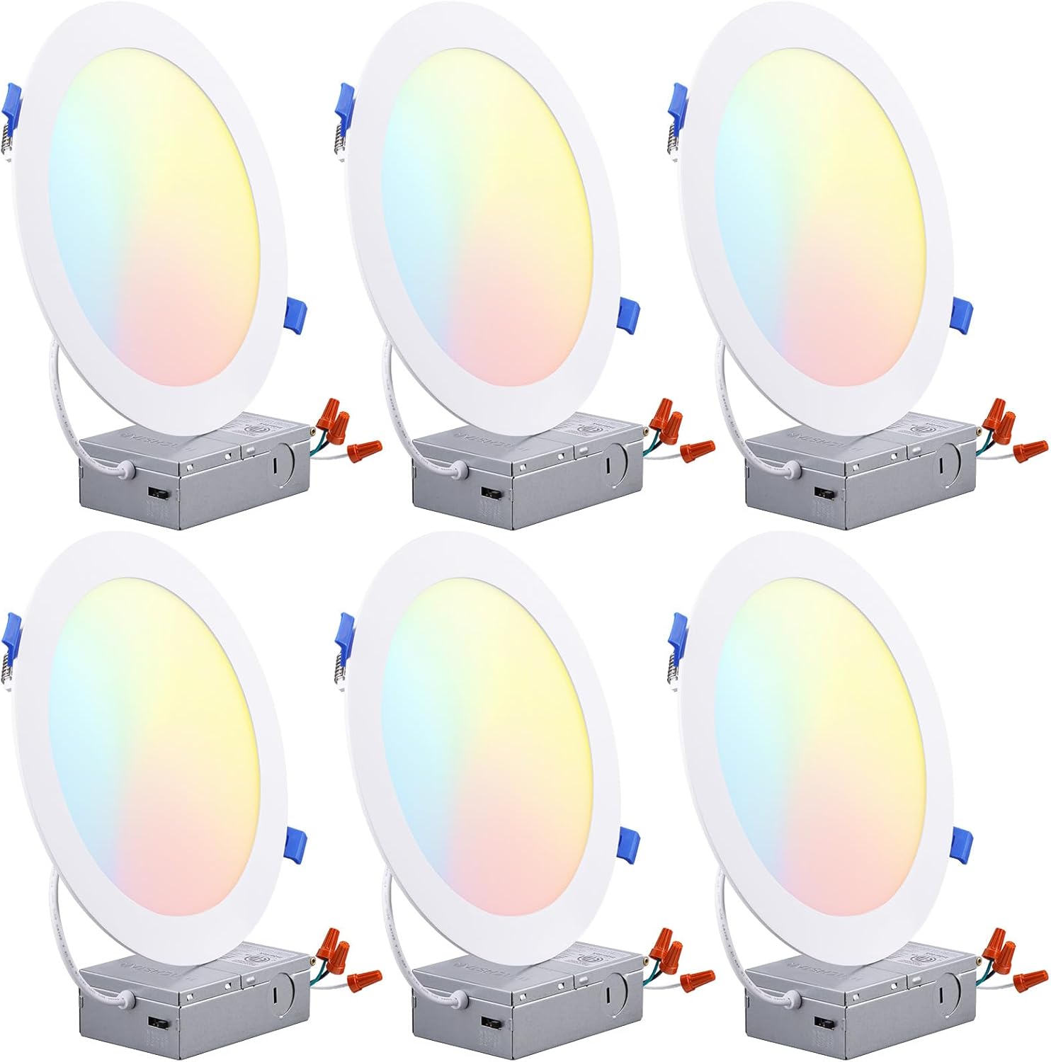 TORCHSTAR 8 Inch 5CCT Ultra-Thin LED Recessed Ceiling Light with Junction Box, CRI90, 27003000350040005000K Selectable, 18W Dimmable Slim Canless Wafer Downlight, ETL & ES & FCC, Pack of 6
