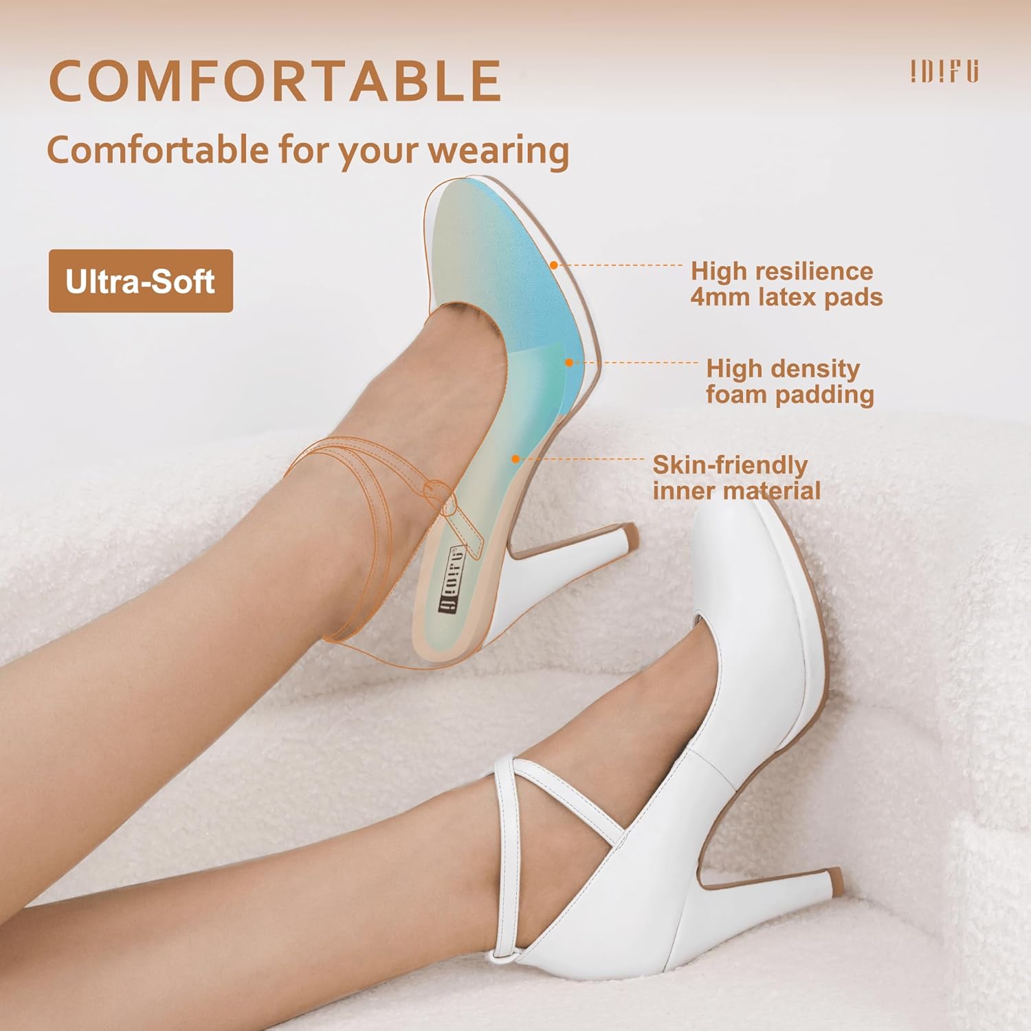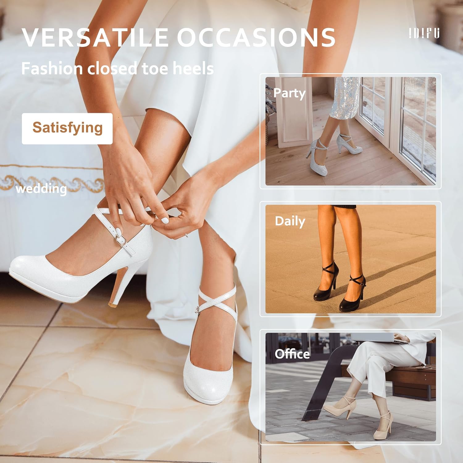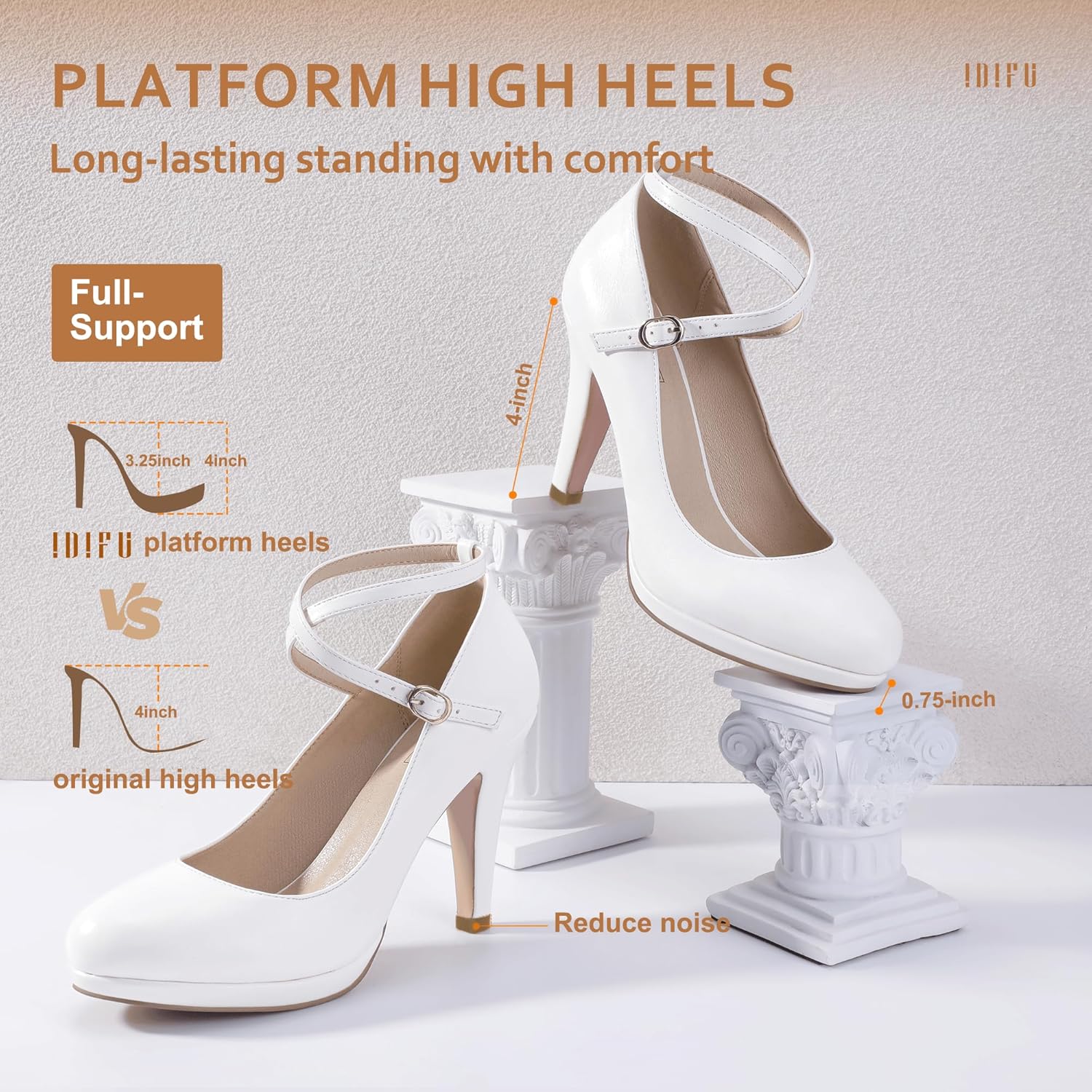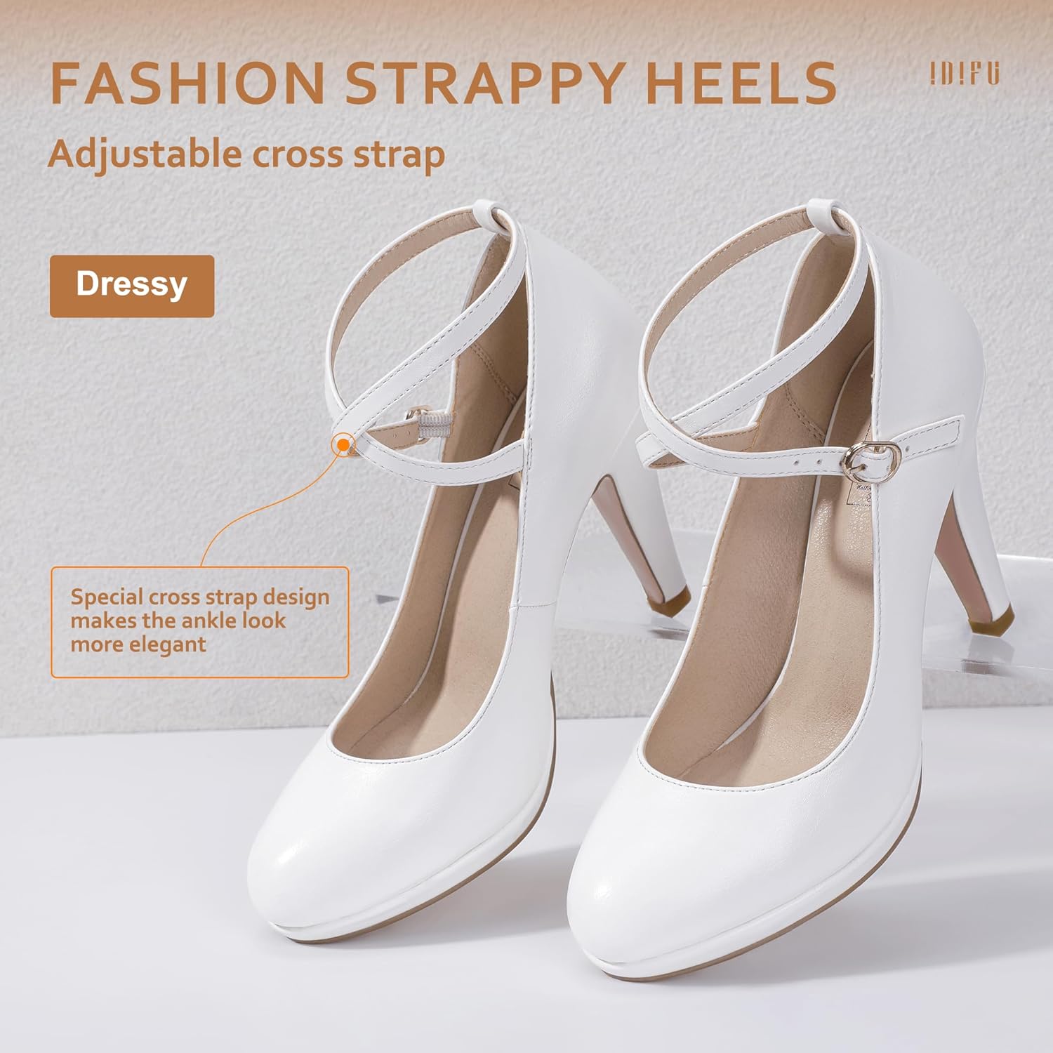 Zapatos IDIFU Tracy Platform para mujer, tacones altos con punta cerrada, con correa cruzada en el tobillo, para trabajo informal, boda
