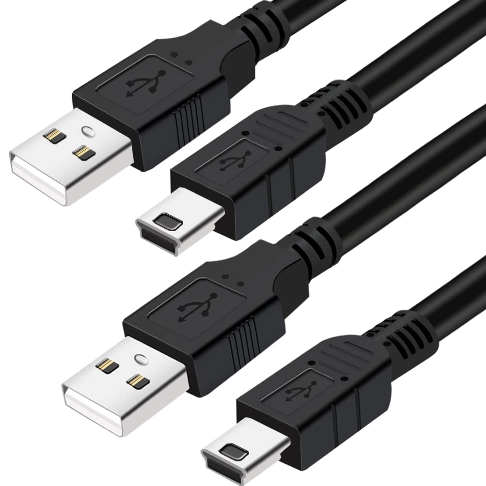 What You Get: 2 Packs 10 foot USB 2.0 Mini USB Cable, Type A Male to Mini 5-Pin Type B Product Description: USB 2.0 specification, Hi-Speed transfer rates up to 480Mbps. Connectors: USB to Mini USB 5-Pin PC and Mac compatible Color: Black Length:10 feet / 3 meter. Compatible Devices: charger cord for PS3 controller /Wii U Pro,Playstation 3 usb cable for PowerShot Rebel EOS DSLR Cameras such as EOS 700d/77d/80d/1300d/m3 etc. camera cable for Nikon D300/D3100/d7000/D610Digital, External hard drives, MP3 player / mp4 players, printers usb cord for Garmin nuvi Navigator Receiver,driving recorders, etc. charger cord for Gopro Hero 3+,HERO4/HERO3/HD HERO2/HD HERO for SanDisk Sansa MP3 player for Sat Navigation charging cable for Zoom Mic, PDAs usb cable for Dash Cam etc Mini-USB to USB Cable Extra Long 10 Foot For use with Sony PS3 DualShock 3 SIXAXIS CECHZC2U Joystick Controller,Sony PlayStation-3,external hard drives, Dash Cam,HTC Ti-84 Plus, Warhawk/Pure/Touch2/Tattoo/Click/Mega/T3333/Touch Pro 2/Touch Pro2 CDMA/Rhodium/XV6875/Fortress/Lancaster/Memphis/Droid Eris,TomTom One First Edition/Second Edition/XL/XLS,TomTom GO 520/530T/700/720/720T/920/920T and other devices with Mini-B port. Corrosion-resistant bare copper conductors, premium connector keep the mini usb 2.0 cable maximum conductivity and minimize data loss. Easily play PlayStation 3 while charging your controller