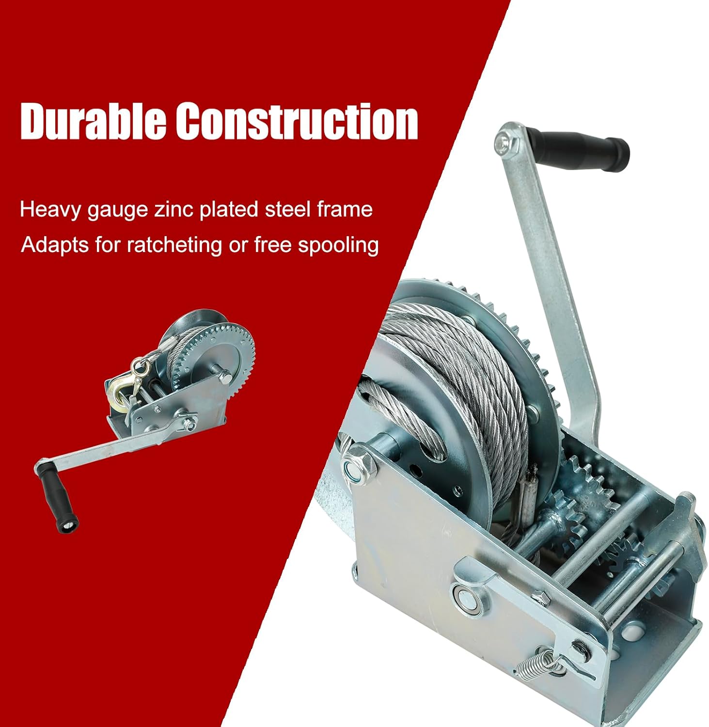 BLACKHORSE-RACING 3500 libras Palanca de Mano con Cable de 10 metros, Palanca Manual de Engranajes de Acero Temperado para Vehículo Todo Terreno RV Barco Remolque Camión Palanca Marina de Mano de Alta Capacidad con Gancho