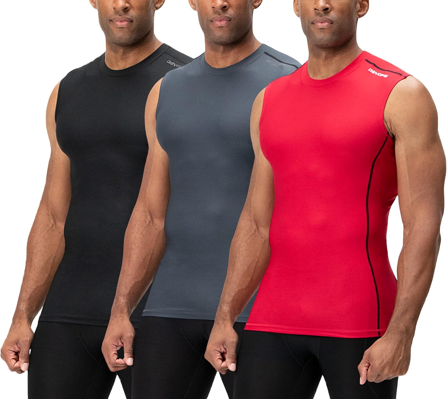 DEVOPS 3 Pack Men's Athletic Compression Shirts Sleeveless