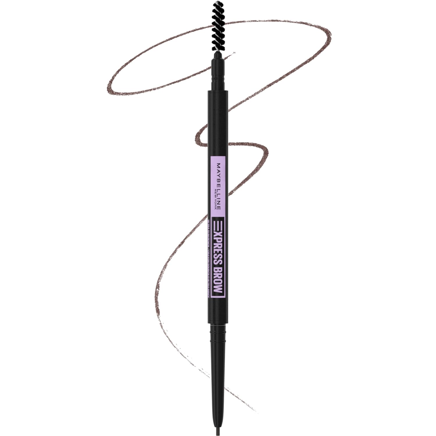 Maybelline Express Brow Ultra Slim Eyebrow Makeup, Pencil de Cejas con Punta de Precisión y Esponja para Cejas Definidas, Marrón Profundo, 1 Unidad