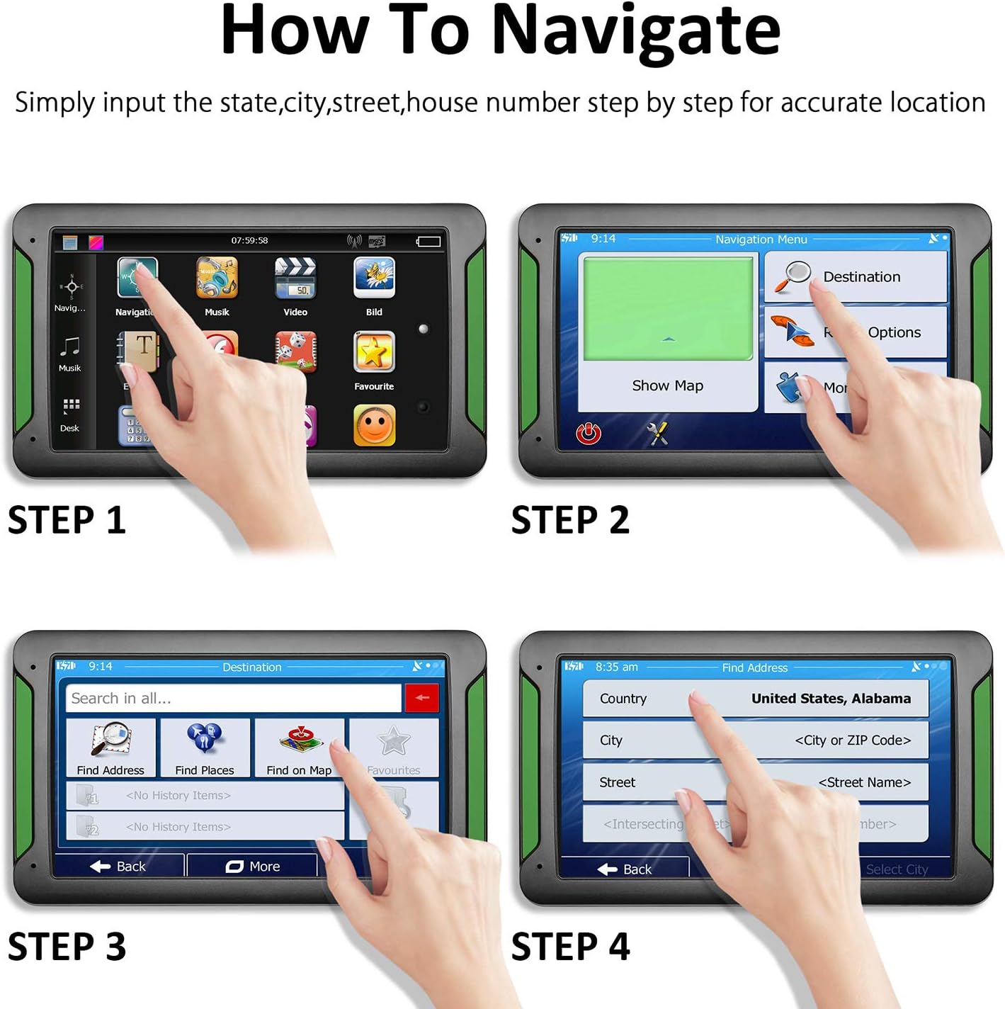 Sistema de navegación GPS para coche LTTRBX de 7 pulgadas, pantalla táctil de 8 GB, voz real hablada giro a giro, sistema de navegación para automóviles, navegador satelital GPS para vehículos con actualización gratuita de mapas de por vida (negro)
