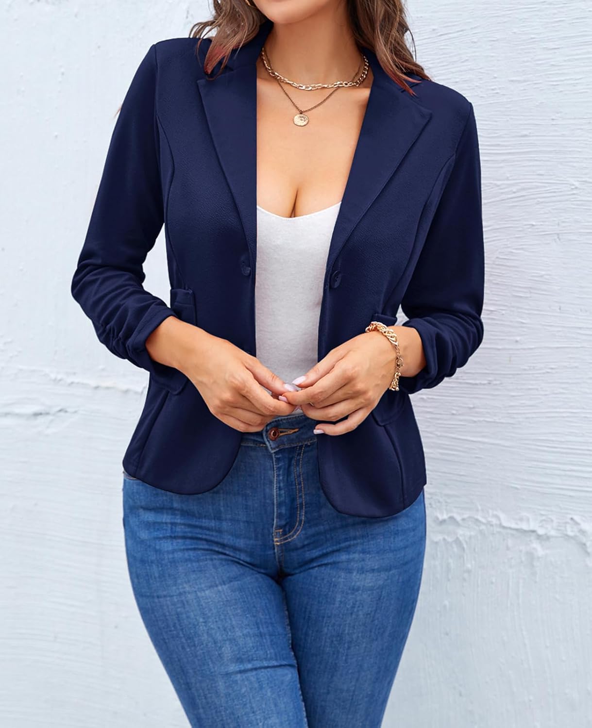 Unifizz Womens Casual Work Office Blazer Pockets Buttons Suit Jacket 3/4 Sleeve