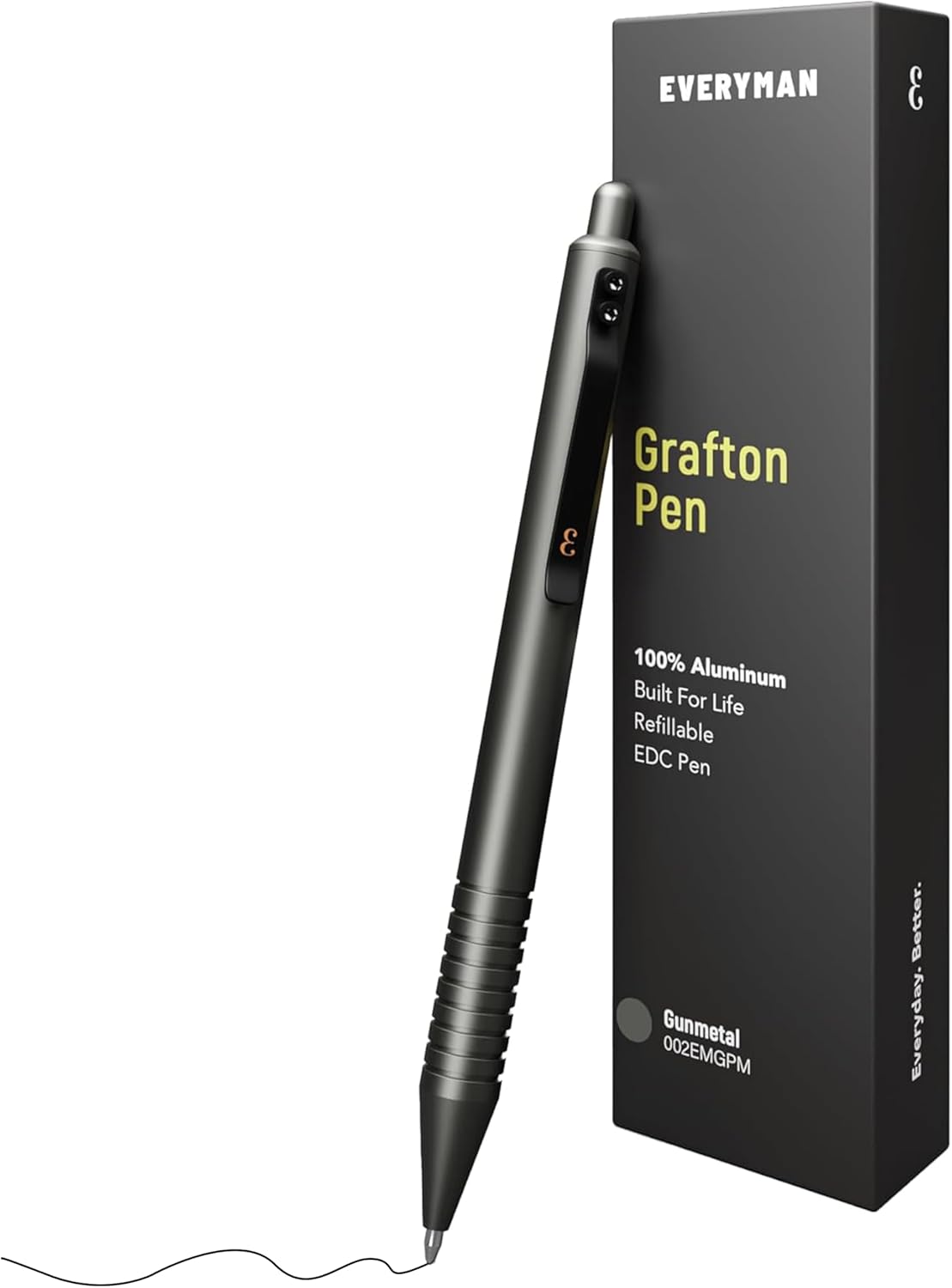Everyman Gunmetal Grafton Full Click Refillable 0.7mm Gel Ink Pen | Sleek Anodized Aluminum EDC Pen with Deep Grooved Grip | Smooth Writing Pocket Pen for Office, Travel, Gifting & Daily Use
