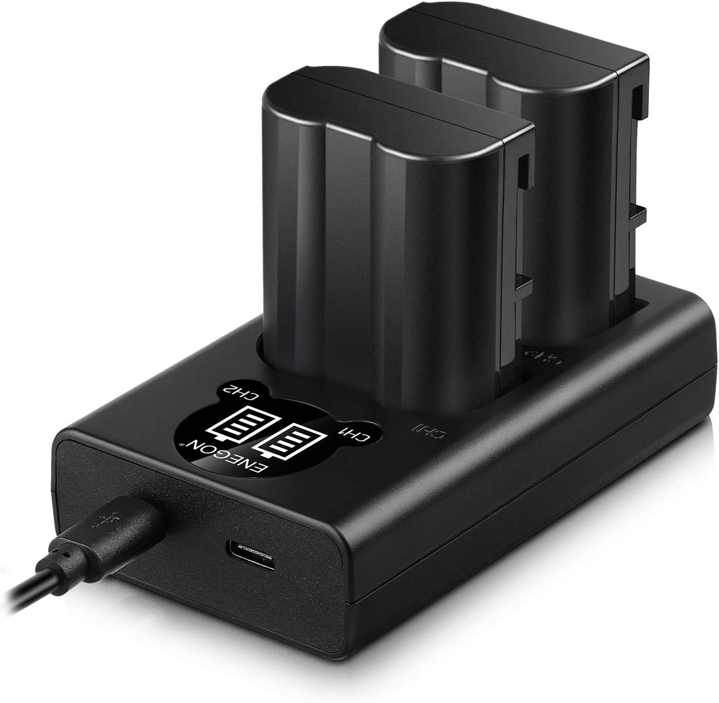 Baterías ENEGON EN-EL15C (Paquete de 2) y Kit de Cargador Dual LED Inteligente para Cámaras Digitales Nikon ZF Z6, Z7 Z8 D7500 D7000, D7100, D7200 D500, D600, D610, D750, D780 D800, D810, D800E, D810A, D850