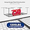 1200 lbs Tested, 750 lbs Rated: Overhead garage storage rack is rigorously tested at 1.6 times the load (1200 lbs) to ensure exceptional safety and durability, supporting up to 750 lbs for your tools and equipment.