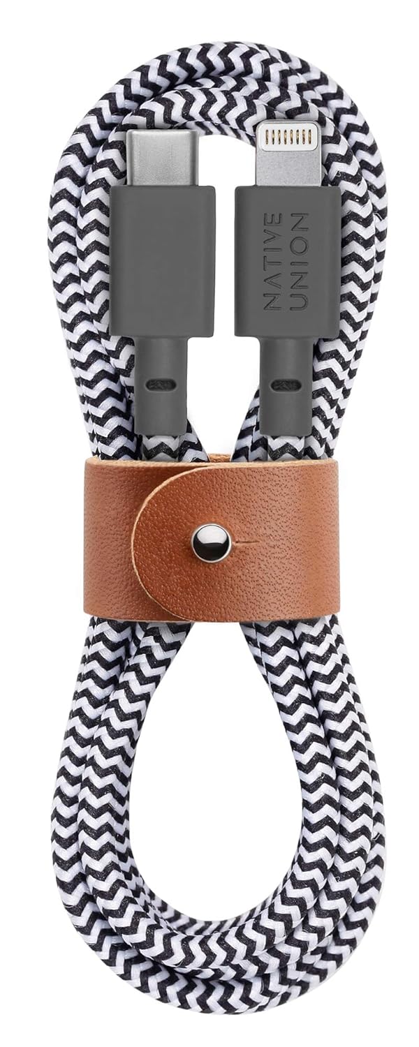 Native Union Belt Cable USB-C to Lightning - 4ft Ultra-Strong Reinforced Charging Cable with Leather Strap [MFi Certified] Compatible with iPhone 14, iPhone 13 and Earlier (Zebra)