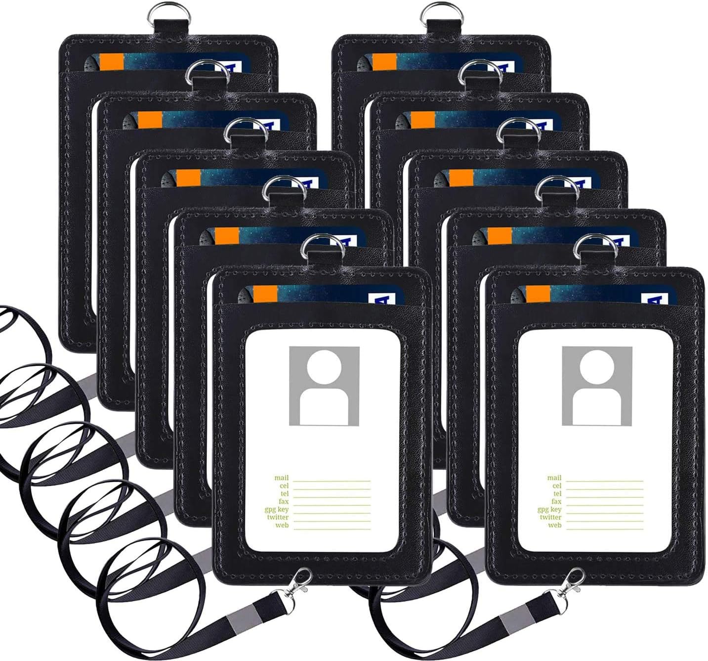 PU Leather ID Badge Card Holder, Vetoo - 10 Pack PU Leather Vertical ID Badge Card Holder with Detachable Lanyard/Strap