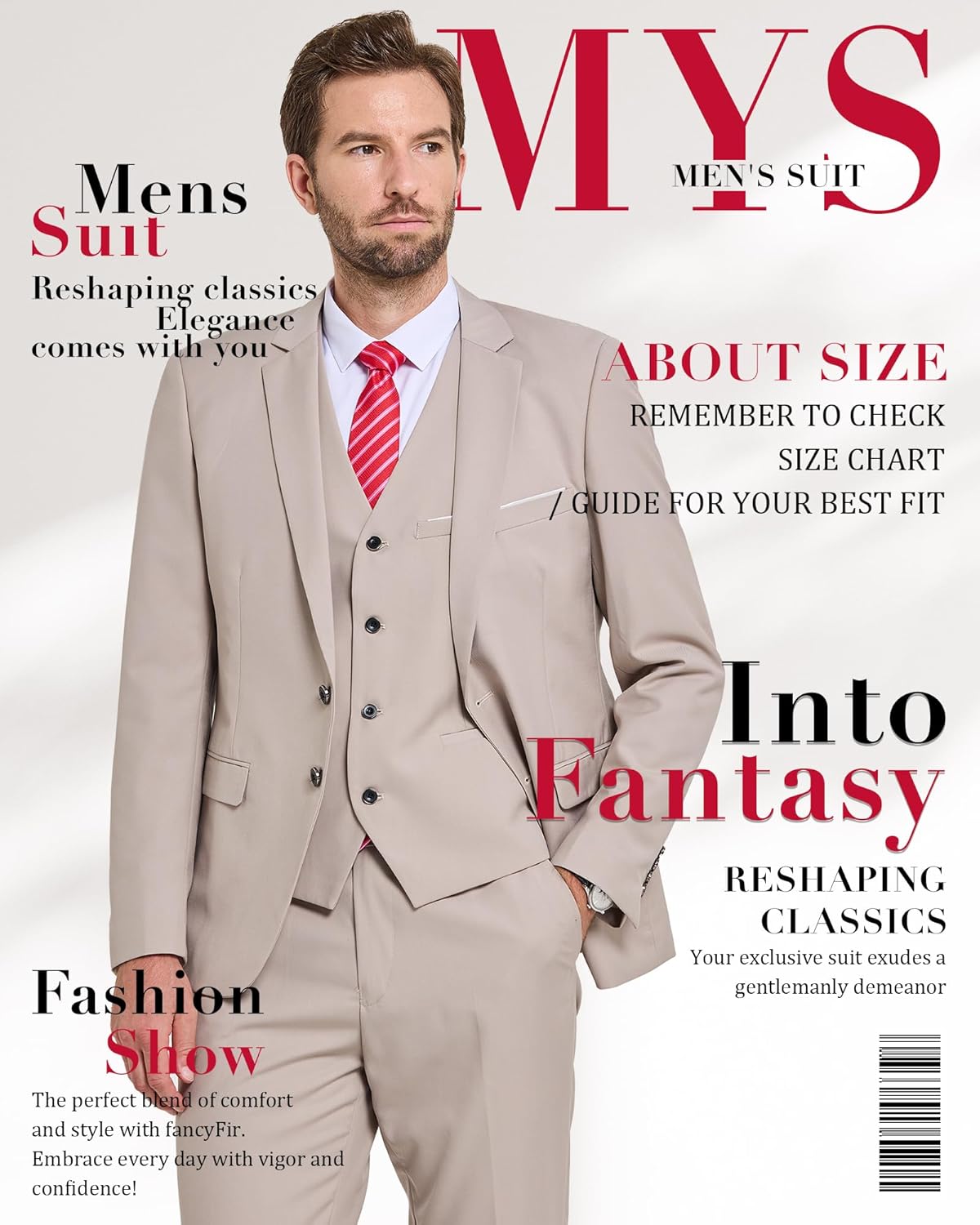 MY'S Men's 3 Piece Slim Fit Suit Set with Tie, 2 Button Blazer Jacket Vest & Pants, Business Wedding Party Prom Suit for Men
