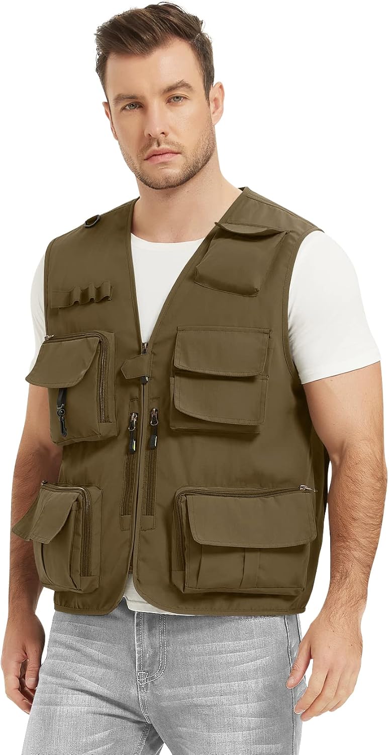Chaleco Flygo para hombre, de malla de secado rápido, para pesca, fotografía y escalada, chalecos informales para exteriores, chaqueta sin mangas para trabajadores, viajeros, fotógrafos, periodistas, deportes, senderismo y caza. El gancho de resorte, los anillos en forma de D, la cinta para anillos y otros diseños se pueden unir a tijeras, taladros y ganchos. 15 bolsillos con cierre de velcro te permitirán tener todo tu equipo y equipo al alcance de la mano. El tejido 100% nailon y malla ayuda a mantenerte fresco y cómodo, y la parte trasera se puede abrir para enrollarla en el bolsillo inferior y revelar la parte trasera de malla a medida que el día se hace más cálido. ¡Una distribución uniforme del peso hace que parezca que no está ahí! Las cremalleras de latón, que se cierran al morder, se desgastan suavemente y se pueden tirar más de 100 000 veces. Por favor, confirma tu talla siguiendo la tabla de tallas para determinar cuál es la mejor opción para un ajuste cómodo. Si vas a poner ropa debajo del chaleco, es posible que desees pedir una o dos tallas más grandes de lo que llevas normalmente. Tabla de tallas Flygo: US XS, pecho: 41.73 pulgadas/106 cm, ancho de hombros: 16.54 pulgadas/42 cm, longitud: 24.8 pulgadas/63 cm EE. UU., pecho: 43.31 pulgadas/110 cm, ancho de hombros: 17.72 pulgadas/45 cm, longitud: 25.59 pulgadas/65 cm EE. UU. M, pecho: 44.88 pulgadas/114 cm, ancho de hombros 47 cm/18,5 pulgadas/67 cm de longitud de EE. UU. L, pecho: 48,82 pulgadas/124 cm, ancho de hombros: 20,08 pulgadas/51 cm, longitud: 27,95 pulgadas/71 cm, pecho: 130 cm/51,18 pulgadas/130 cm, ancho de hombros: 20,87 pulgadas/53 cm, longitud: 28,74 pulgadas/73 cm, viaje ligero, pero siempre tenga su equipo preparado ¡para tu próxima gran aventura! El chaleco Flygo es un complemento ideal para muchas actividades al aire libre, como la caza, el ciclismo, el tiro con arco, las caminatas y carreras benéficas, los campamentos, los safaris y los viajes. También es perfecto para guardar equipos de fotografía. El mejor regalo: es una buena opción como regalo para tu padre, esposo o novio. Disfruta aún más de tus aventuras al aire libre y añádelo al carrito ahora, ¡así estarás listo para salir a jugar!