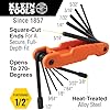 Key sizes: 1/2, 3/8, 5/16, 1/4, 7/32, 3/16, 5/32, 9/64, 1/8, 7/64, and 3/32-Inch