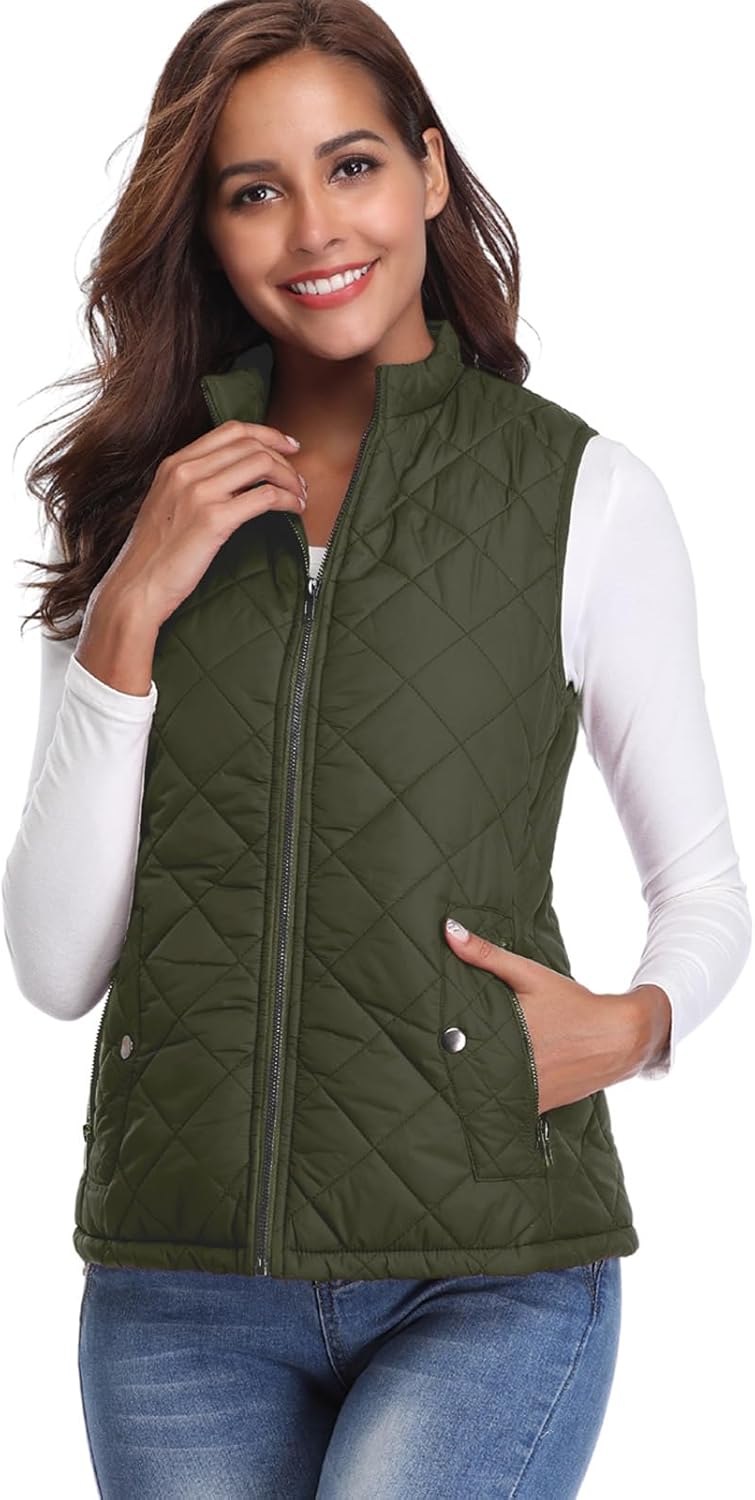 Fuinloth Chaqueta Acolchada para Mujer, Chaleco Ligero con Cremallera y Acolchado
