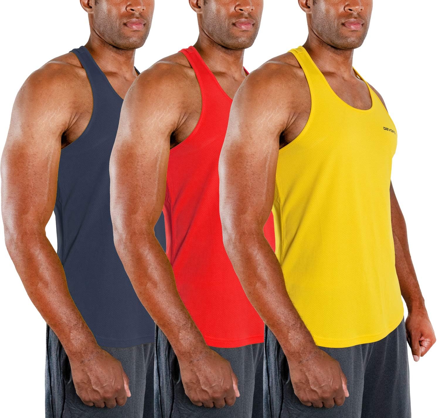 DEVOPS 3 Pack Men's Y-Back Dry Fit Muscle Gym Workout Tank Top