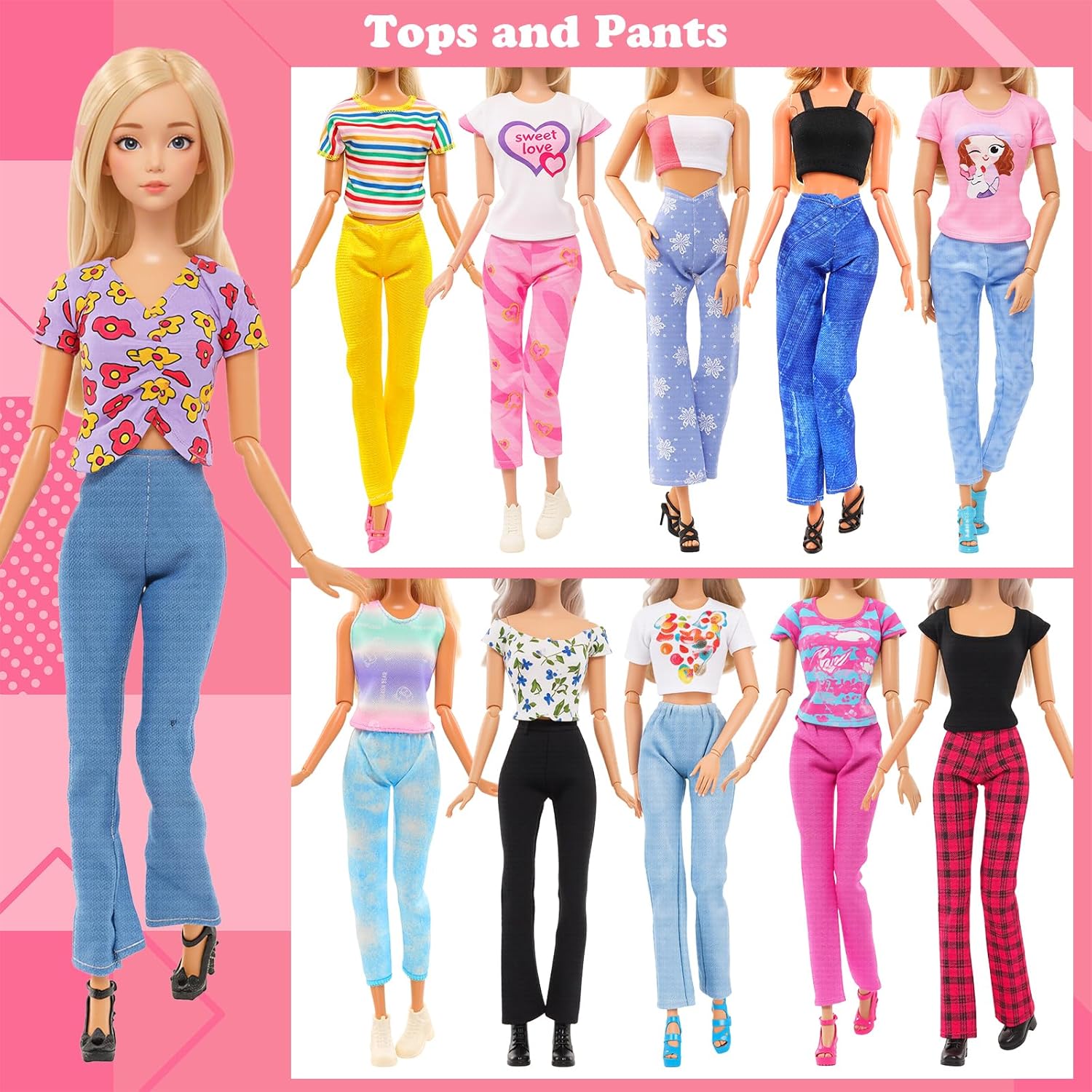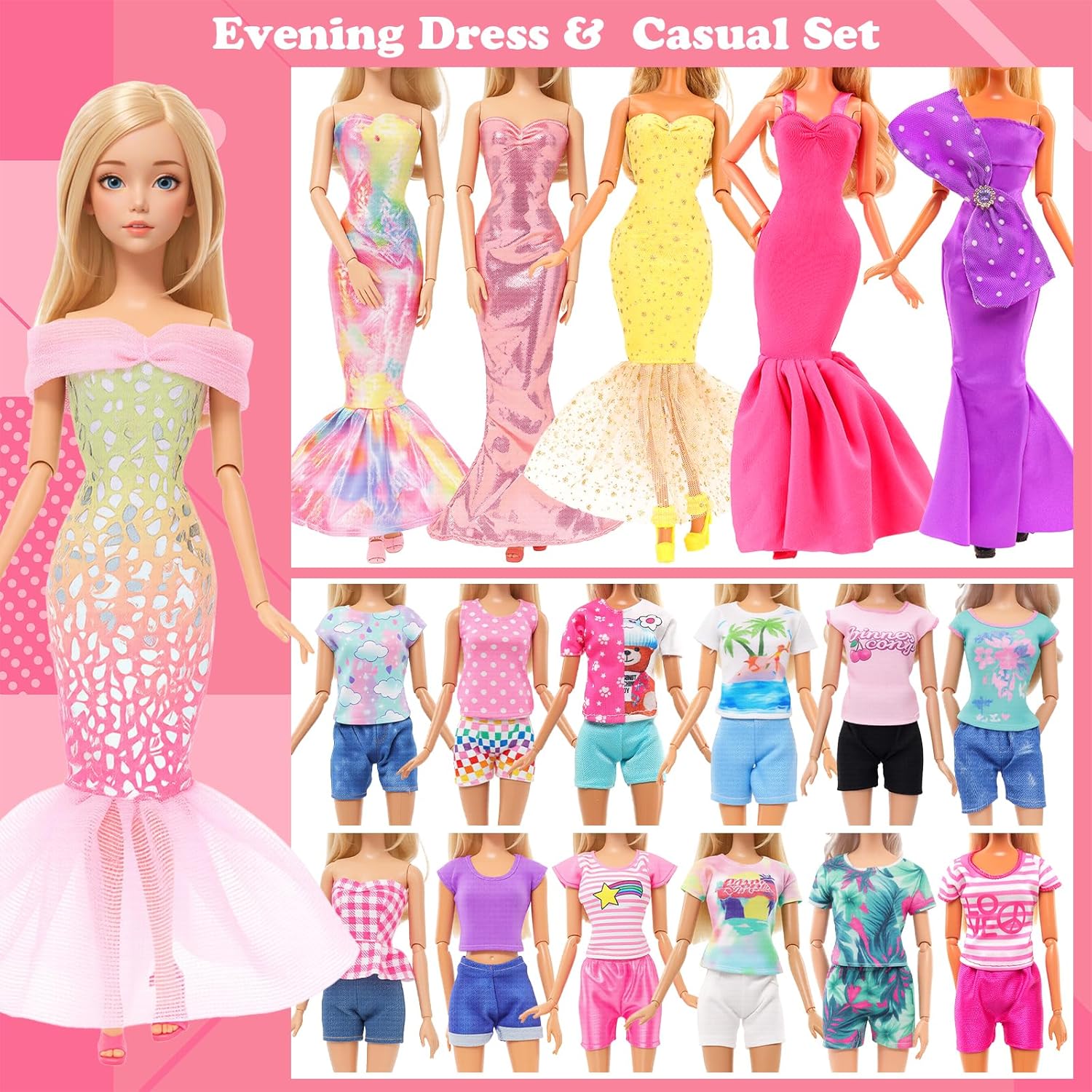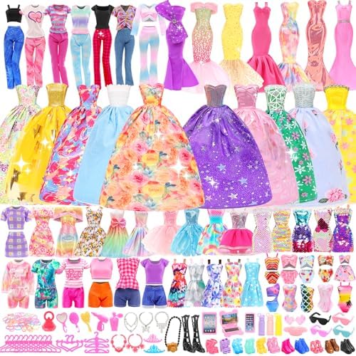 ESTILOS ACTUALIZADOS - Una variedad de vestidos de fiesta, nueva adición de faldas largas, las muñecas pueden vestirse con hermosas ropas para ocasiones formales. Nueva falda casual con top y pantalones, la muñeca puede ir de compras tranquilamente. Con alas añadidas al traje de baño, la muñeca puede convertirse en una hada de las flores y volar libremente en el aire. El paquete incluye muchos atuendos y vestidos, que se pueden combinar a voluntad para diferentes ocasiones