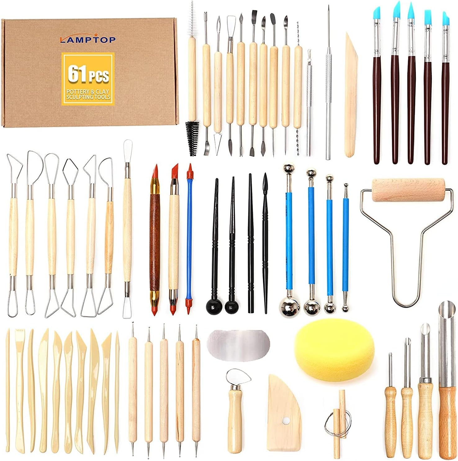 LAMPTOP 61 piezas de herramientas de cerámica y arcilla polimérica y conjunto de herramientas de escultura de arcilla polimérica para modelado de arcilla y herramientas de tallado, herramientas de arcilla que se seca al aire